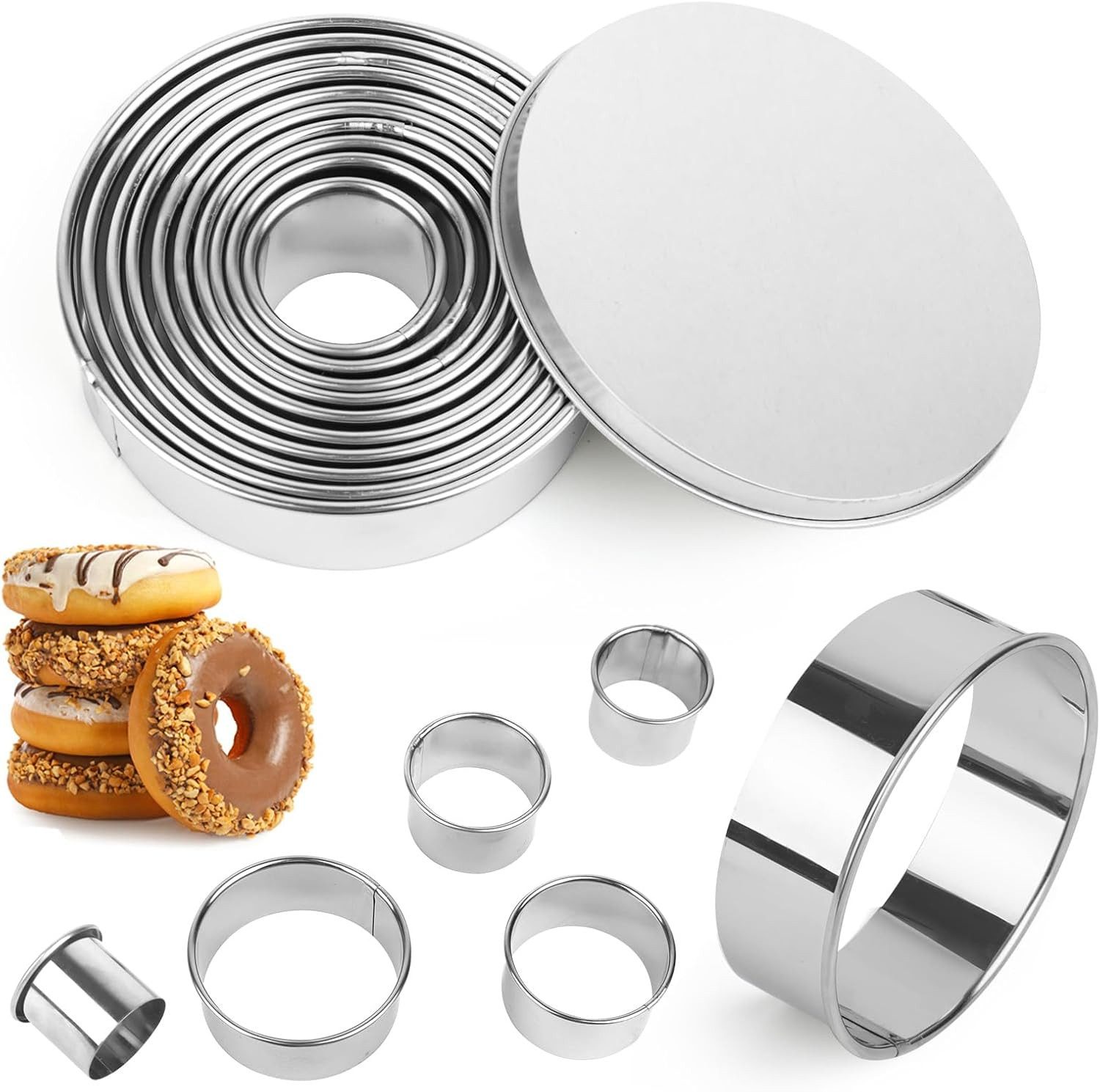 Mit dem 11-teiligen Ausstechformen-Set aus Edelstahl bringen Sie Ihre Backkunst auf ein neues Niveau. Die runden Ausstecher sind ideal für Plätzchen, Donuts, Muffins, Torten-Dekoration und Gebäck. Dank hochwertigem, rostfreiem Edelstahl sind die Formen langlebig, robust und leicht zu reinigen. Ob für Weihnachten, Geburtstage oder den täglichen Gebrauch – dieses Set ist ein unverzichtbarer Helfer in jeder Küche.
