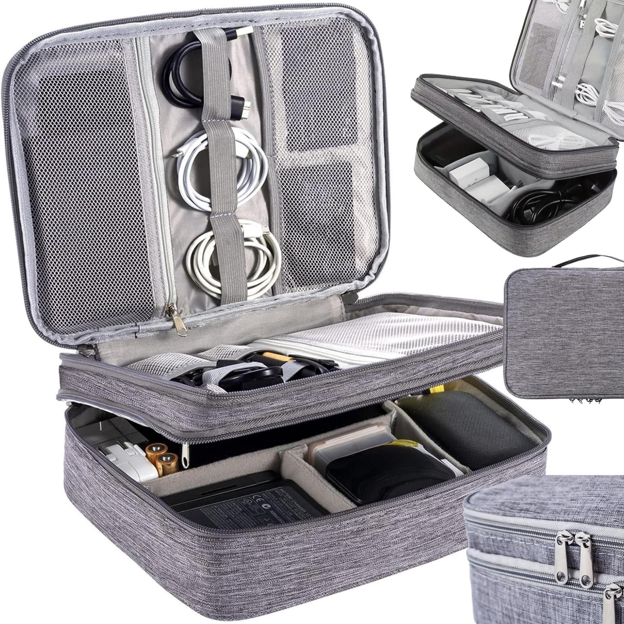 Der Reiseorganisator wurde mit vielen Fächern ausgestattet, sodass Sie Ihr Zubehör ordentlich und sicher verstauen können. Er eignet sich hervorragend für verschiedene Arten von Kabeln, Kopfhörern, USB-Sticks, Speicherkarten und Ladegeräten. Durch das praktische Design können Sie problemlos auf jedes Ihrer Geräte zugreifen und behalten stets den Überblick. Mit einem bequemen Reißverschluss lässt sich der Organizer schnell öffnen und schließen.