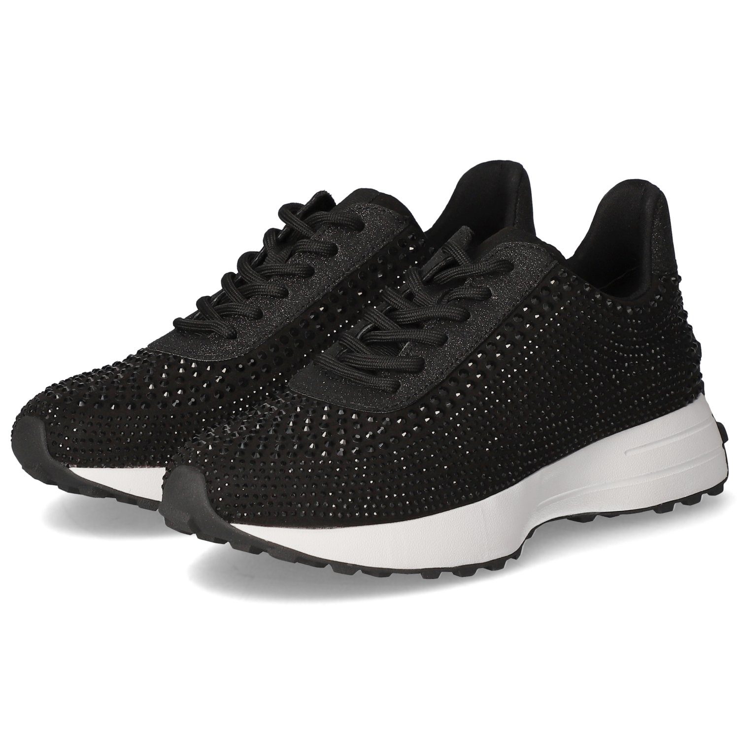 La Strada Damen Low Sneaker Schwarz Textil-Synthetik-Mix - sportliches Design - zierende Schmucksteine - Schnürung - verstärkter Zehen- und Fersenbereich - gepolsterter Einstieg - leichtes Textilfutter - gepolsterte Decksohle - flexible, rutschhemmende Profilsohle - moderner Keilabsatz