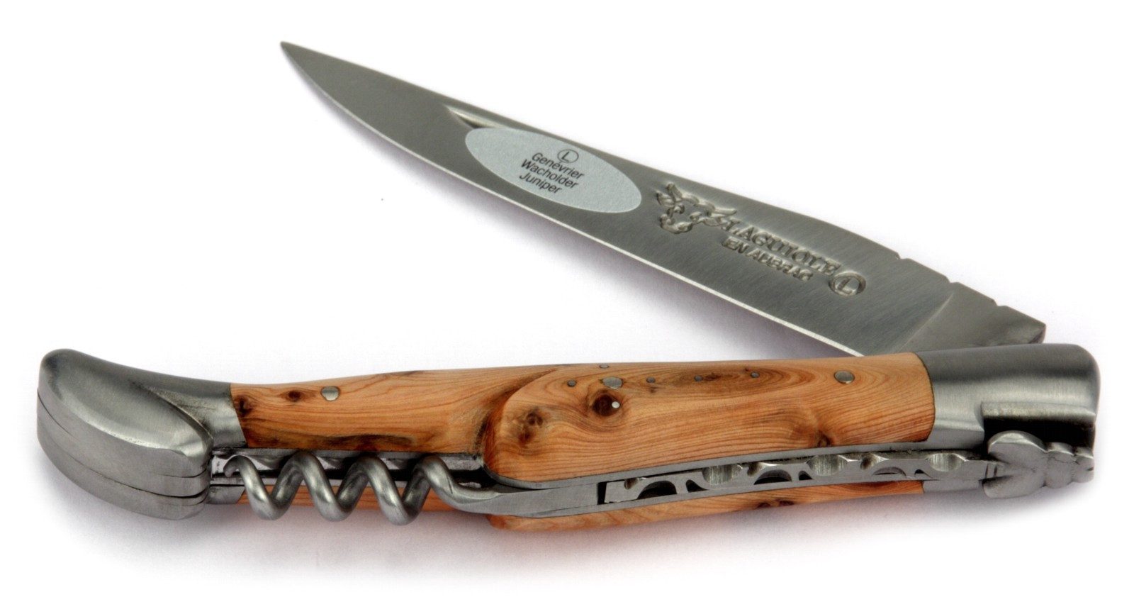 Perfekt verarbeitetes, original Laguiole Taschenmesser mit Griffschalen aus duftendem Wacholderholz.
