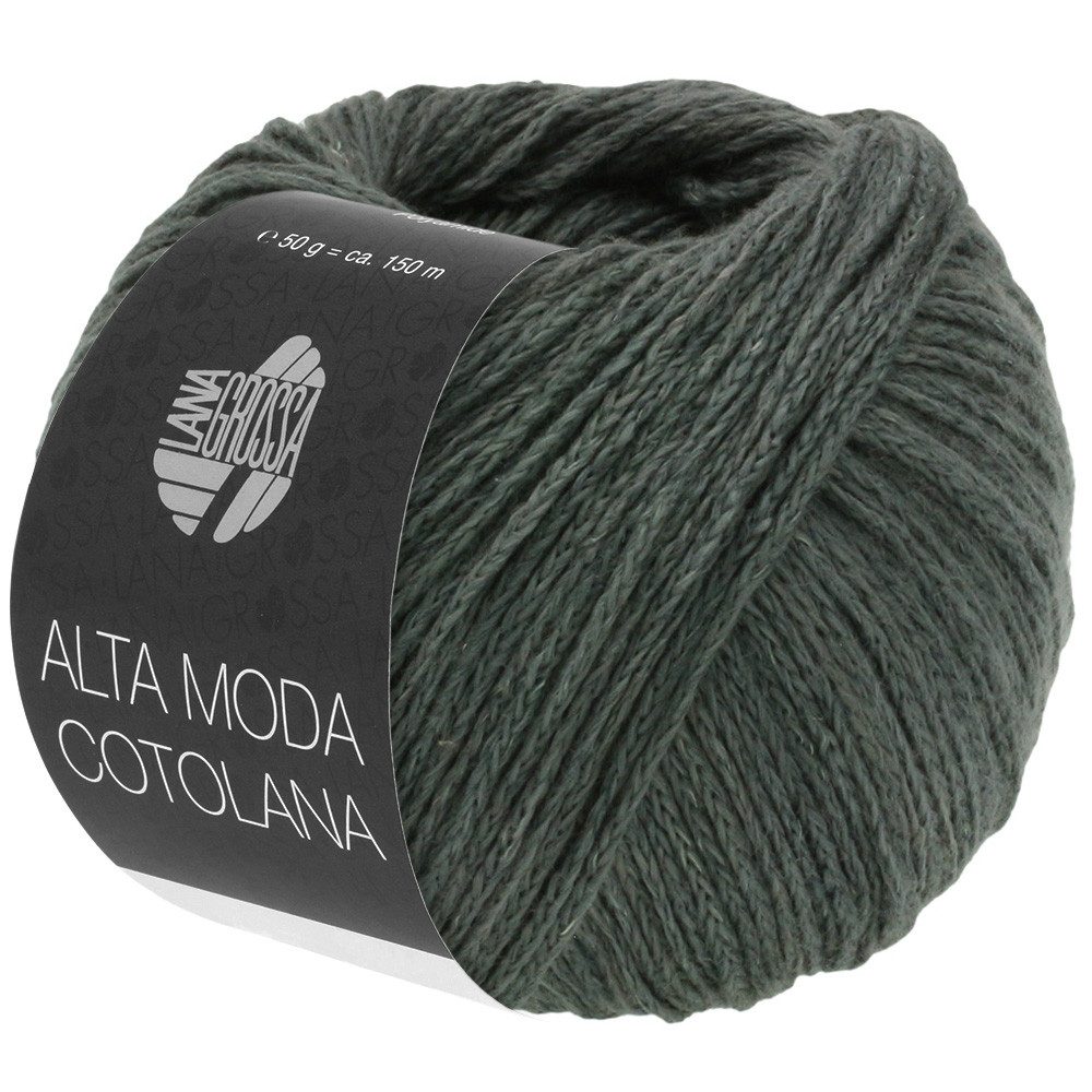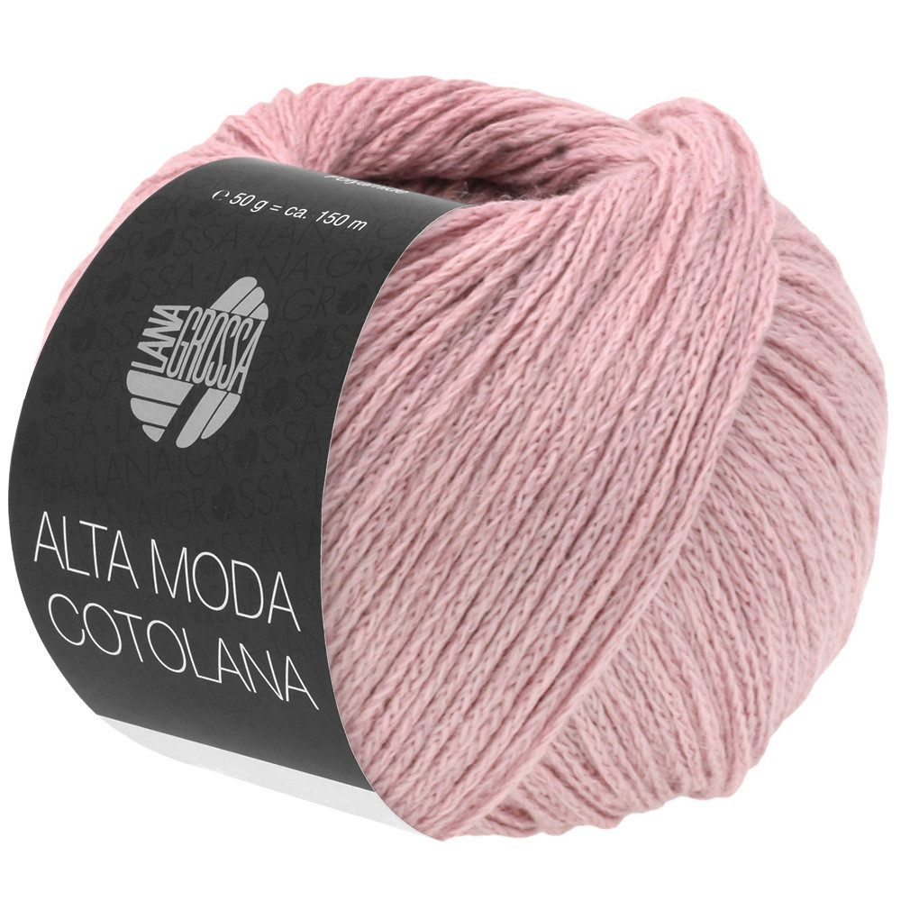 Alta Moda Cotolana von LANA GROSSA ist ein einfarbiges edles Kettgarn aus Baumwolle und Merinowolle mit einem Trägerfaden aus Polyamid. Sie besteht aus 45 % Baumwolle, 45 % Schurwolle Merino und 10 % Polyamid. Durch die Baumwolle trägt sich die Alta Moda Cotolana angenehm auf der Haut. Damit verbunden sind die temperaturregulierenden Eigenschaften der Merinowolle. Die Fasern sind formstabil und halten das Projekt in Form. Durch die glatte Oberfläche bilden sich weniger Knötchen.