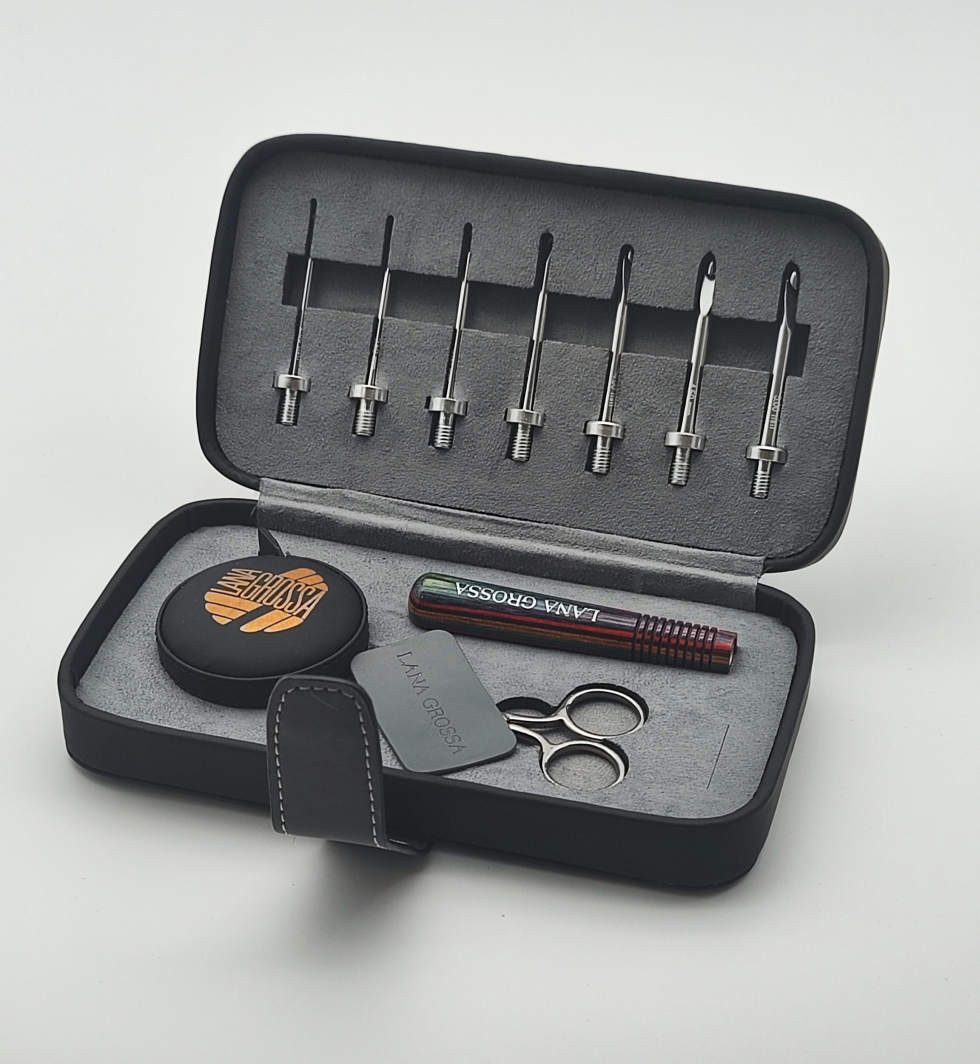 Für alle Häkel -Liebhaber und Profis, die sich viel Flexibilität wünschen. Mit dem Häkelnadelset Vario ist man für alle Häkelprojekte gut ausgestattet. Das Häkelnadelset Vario besteht aus 7 Häkelnadelspitzenpaaren aus Metall mit sehr glatter Oberfläche und einem Holz-Griff. Ebenso befindet sich in dem Set, eine kleine Handarbeitsschere sowie ein Maßband. Das komplette Häkelnadelset kommt in einer edlen und hochwertigen Box, welche durch einen Metallklipp verschlossen wird.