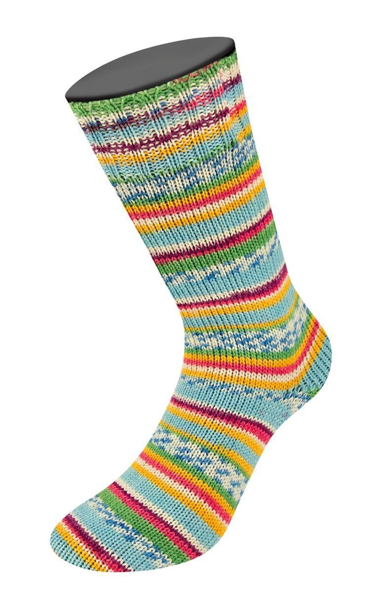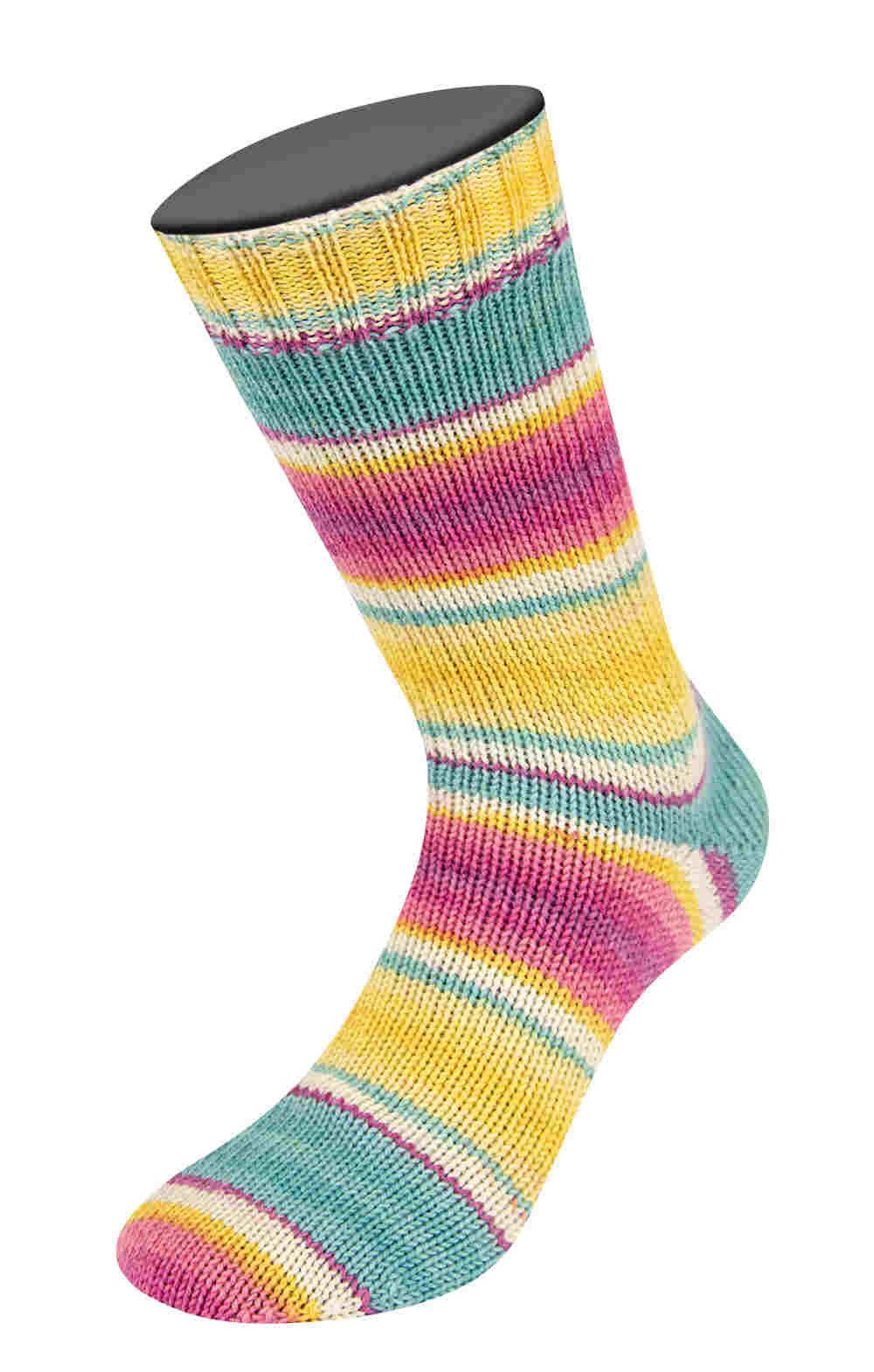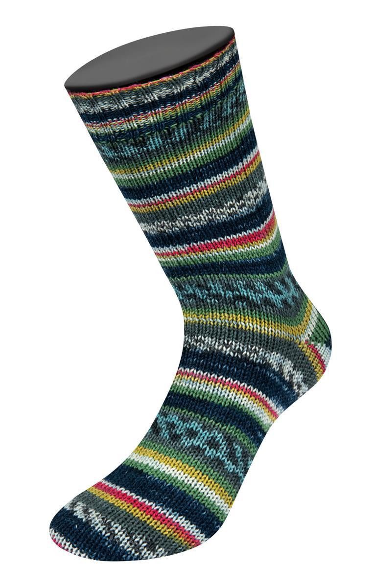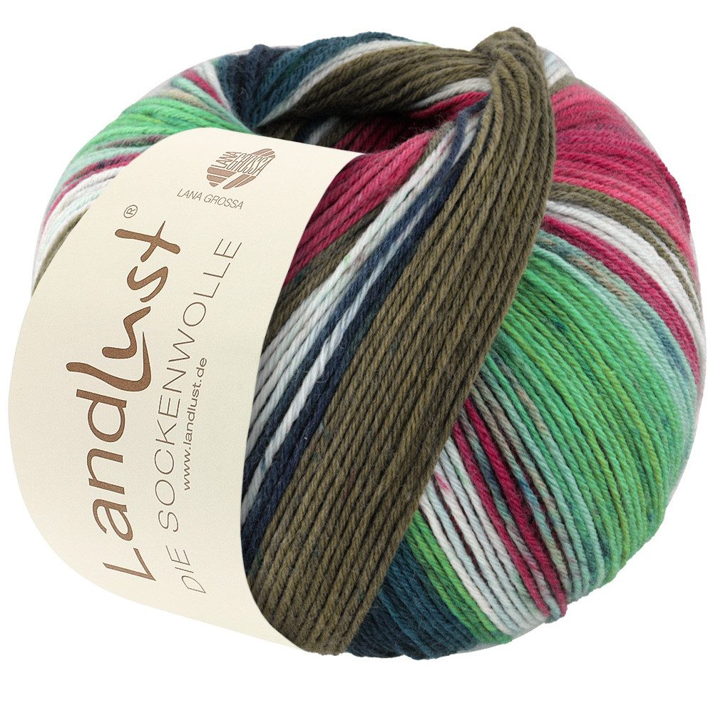 Landlust Die Sockenwolle 6-F 150g von LANA GROSSA ist eine mehrfarbige 6-Fach Sockenwolle. Sie besteht aus 80 % Schurwolle Merino und 20 % Polyamid. Das Garn zeichnet sich durch seine wärmeregulierenden und atmungsaktiven Eigenschaften aus und ist sehr weich. Die Fasern sind formstabil und halten das Projekt in Form. Auf er Haut trägt sich die Landlust Die Sockenwolle 6-F 150g sehr angenehm und warm. Durch die glatte Oberfläche bilden sich weniger Knötchen.