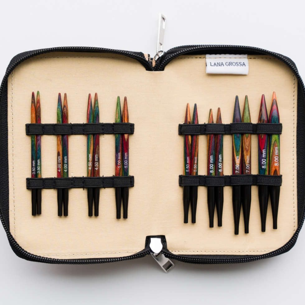 Für alle Strick-Liebhaber und Profis, die sich viel Flexibilität wünschen gibt das Vario Runstricknadel-Set jetzt auch mit kurzen Spitzen. Mit dem Rundstricknadel-Set Vario DESIGN-HOLZ in kurz ist man für alle Strickprojekte gut ausgestattet. Das Stricknadel-Set besteht aus 8 Nadelspitzenpaaren aus robustem Holz mit sehr glatten Oberfläche und 2 Nadelseilen mit jeweils 2 Maschenstoppern und Montagestiften. Die Seillänge wird immer mit den Nadelspitzen gemessen. Das komplette Rundstricknadel-Set kommt in einer edlen Tasche aus Stoff mit zwei Fächern die mit Reißverschlüssen abgetrennt sind.