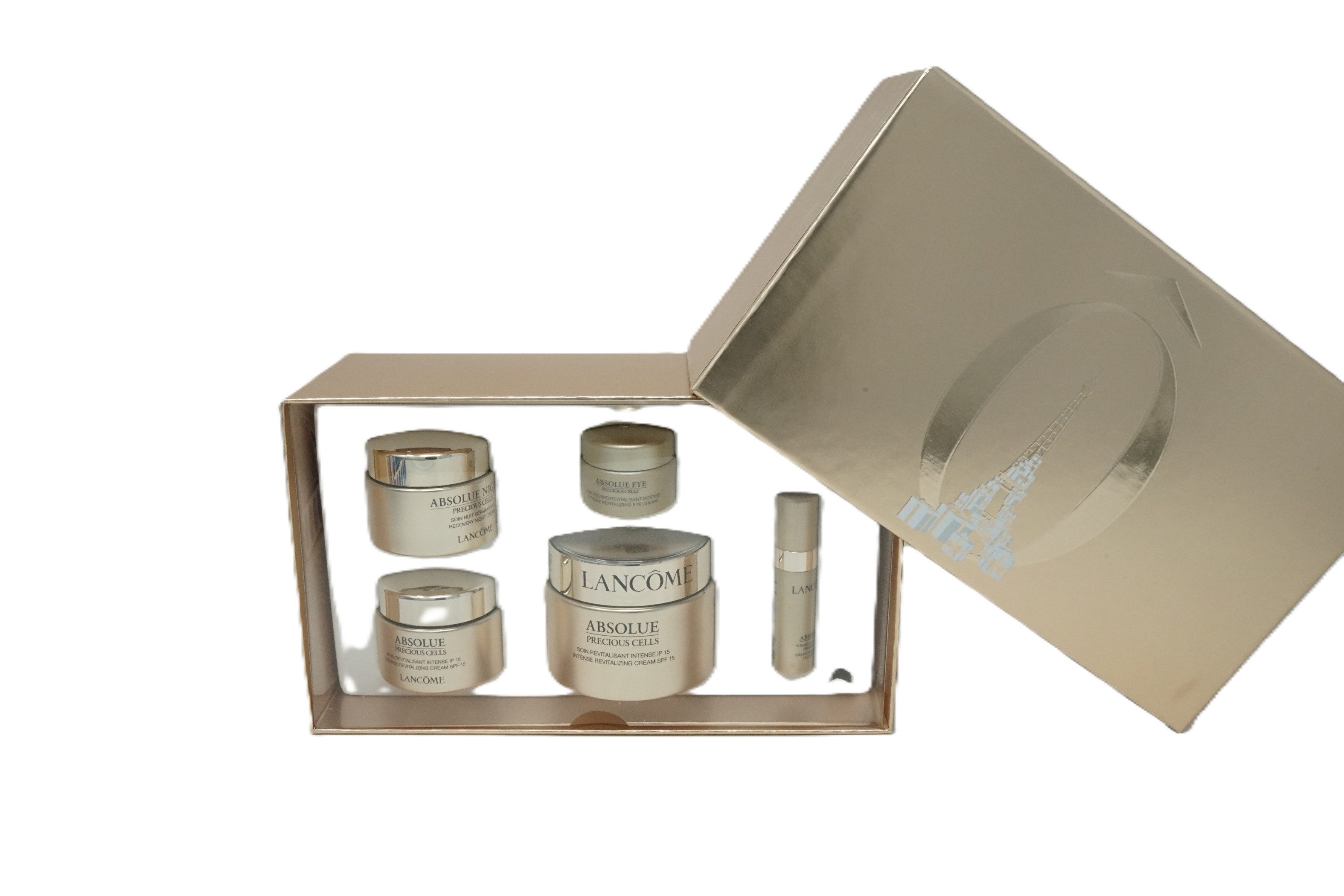 Das Absolue Precious Cells Set von Lancôme vereint vier hochwertige Pflegeprodukte für eine umfassende Anti-Aging-Routine Die revitalisierende Tagescreme 50 ml, Nachtcreme 15 ml, Serum 5 ml und Augencreme 5 ml wirken gemeinsam gegen Zeichen der Hautalterung und schenken eine sichtbar glattere, strahlendere Haut