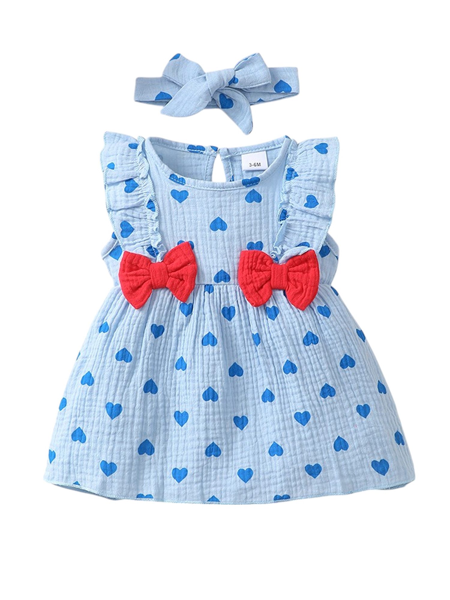 Dieser bequeme, hautfreundliche und atmungsaktive Babyanzug aus reiner Baumwolle ist perfekt für die zarte Babyhaut. Er besteht aus 100 % reiner Baumwolle, ist weich, zart und absorbiert Feuchtigkeit gut. So fühlt sich das Baby den ganzen Tag wohl. Das A-förmige Kleid passt sich der Körperform an und bietet Bewegungsfreiheit und ist zudem niedlich. Das ärmellose Design ist mit exquisiten, leichten, mehrlagigen Rüschen verziert, und der Herz-Print verleiht dem Baby ein kindliches und warmes Gefühl. Die Schleifenverzierung an der Taille ist süß und lieblich und rückt das Baby in den Mittelpunkt.
