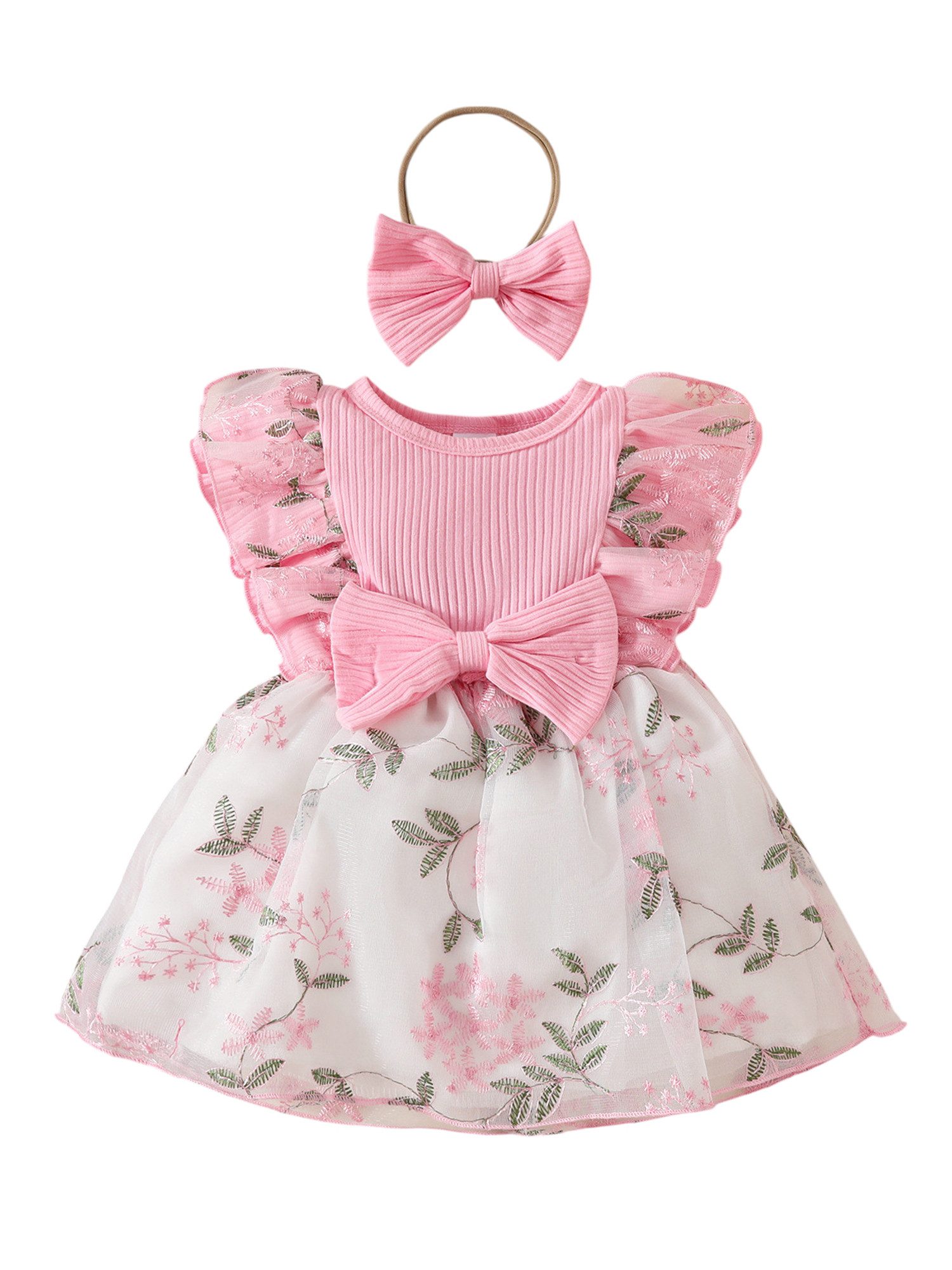 Dieser exquisite Babyanzug für Mädchen ist ideal für besondere Anlässe. Das ärmellose A-Linien-Design mit weichen Rüschen und Mesh-Nähten zeugt von elegantem Temperament. Die sorgfältig gestickten Blumen- und Pflanzenmuster wirken zart und lebendig, als trügen sie den Frühling auf dem Körper, voller Kindlichkeit und künstlerischem Gespür. Der frische und elegante Stil eignet sich sowohl für formelle Anlässe wie Hochzeiten und Partys als auch für alltägliche Fotos, damit Ihr Baby vor jeder Kamera wie eine kleine Prinzessin strahlen kann.