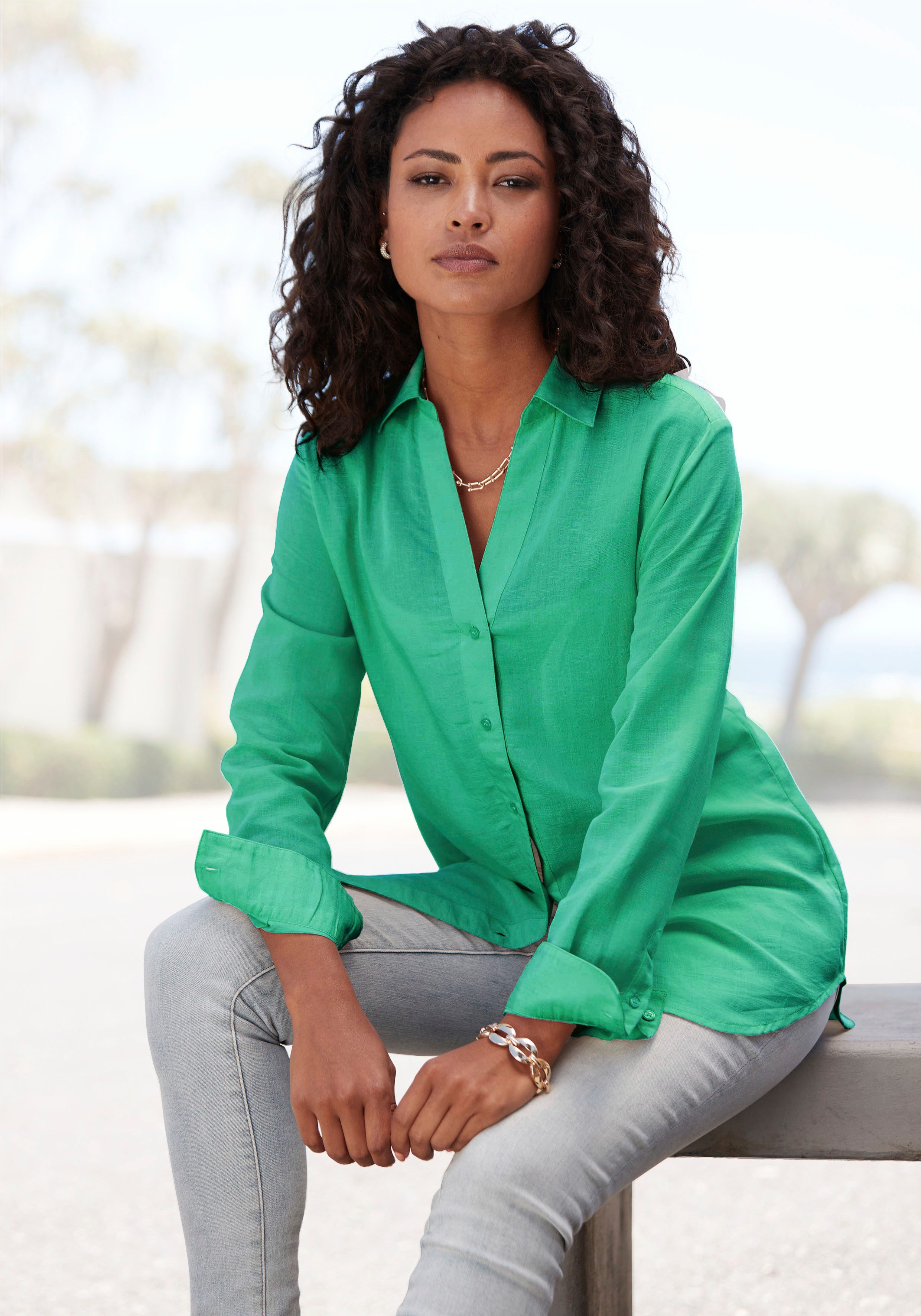 Besondere Merkmale | aus Leinenmix, Damenbluse mit Hemdkragen und Knopfleiste |