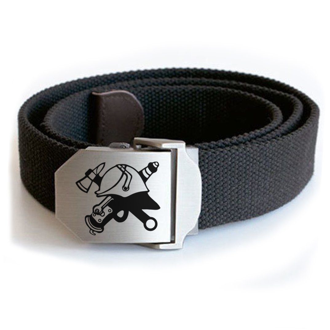 Besondere Merkmale | Feuerwehr Helm graviert in Edelstahl Koppelschloß vom Workwear Gürtel |