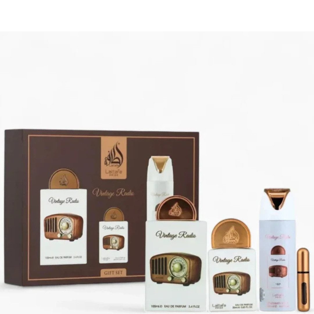 Das Lattafa Pride Vintage Radio Geschenkset vereint drei edle Duftprodukte: ein 100 ml Eau de Parfum, ein 200 ml Deospray und eine 20 ml Miniatur. Ideal für Reisen oder als luxuriöses Präsent. Der Duft eröffnet mit der Frische von Lavendel, Bergamot und Salbei, was einen klaren und belebenden Auftakt schafft. Im Herzen entfalten sich die warmen Noten von Pflaume, Palo Santo und schwarzem Pfeffer, die dem Duft eine würzige Tiefe verleihen. Die Basisnoten aus Sandelholz und Oud sorgen für einen holzigen, langanhaltenden Abschluss, der den Duft über Stunden präsent hält. Dieses Set ist besonders geeignet für Liebhaber aromatisch-holziger Düfte, die eine ausgewogene Mischung aus Frische und Tiefe schätzen. Die Kombination aus Eau de Parfum, Deospray und Miniatur ermöglicht es, den Duft überallhin mitzunehmen und stets frisch zu bleiben. Das elegante Design der Flakons und die hochwertige Verpackung machen das Set zudem zu einem ansprechenden Geschenk. Inhalt des Set: Ein Parfum Eau de Parfum -100 ml Ein kleines Parfum 20 ml Ein Deo -200 ml