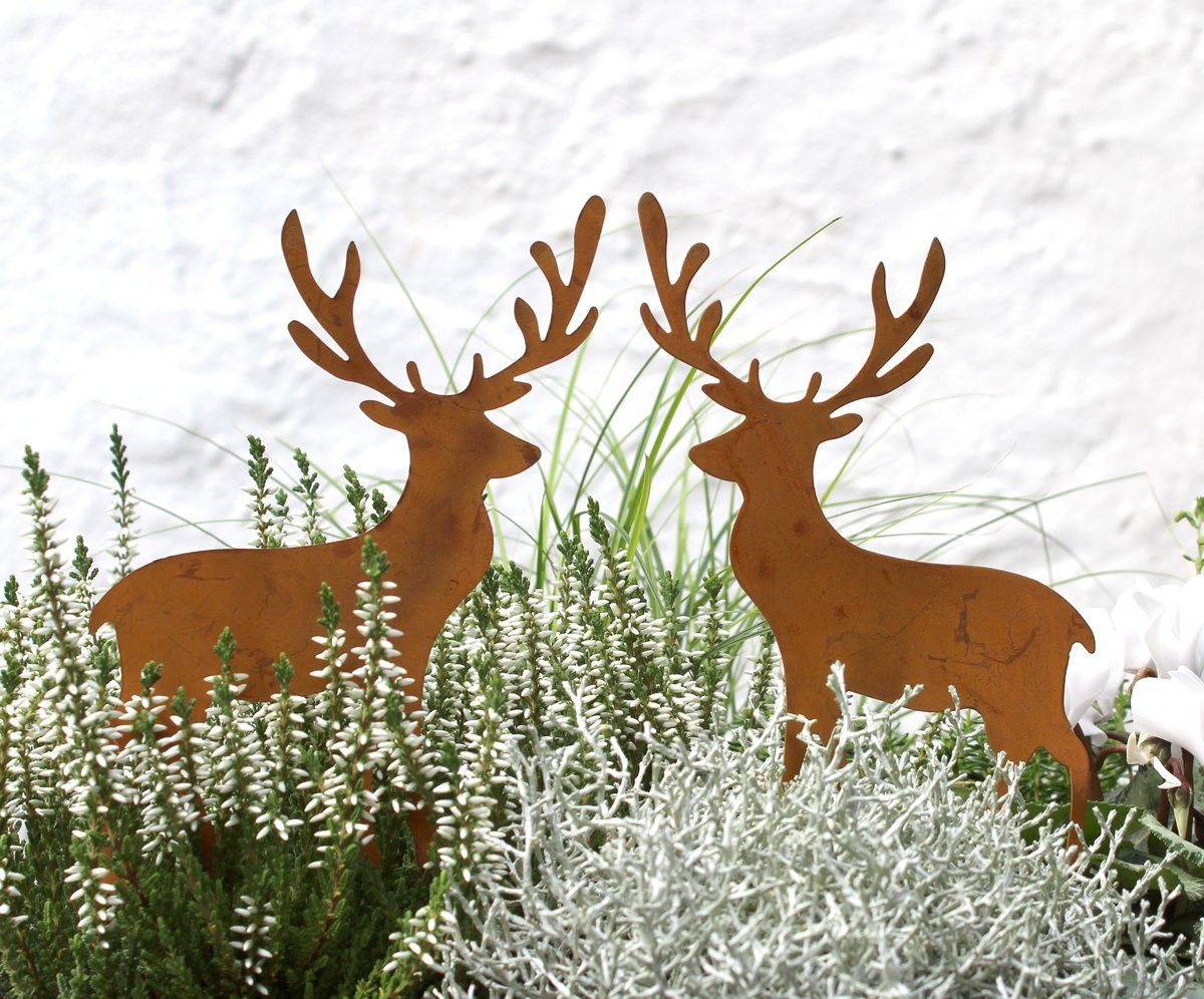 Set-Typ | außen draussen Blumenstecker Blumenstab Hirsch Hirsche Metall Rost Roststecker zum stecken am Weihnachten Dekofigur HIrschstecker Herbstdeko Weihnachtsdeko 2er HIRSCHE |