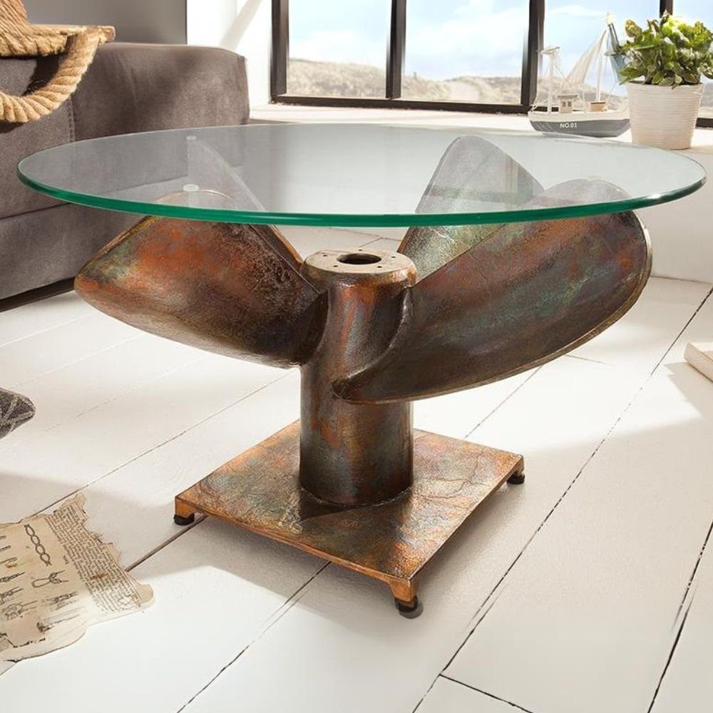 Hier haben wir etwas ganz besonderes für die Freunde des maritimen Flairs. Der Designer dieser Möbelserie ELICA hat eine tolle Symbiose aus Aluminium und Glas geschaffen. Der Fuss dieses Tisches wird in Handarbeit gefertigt und ist durch die damit verbundenen Abweichungen jedes Mal ein Unikat.