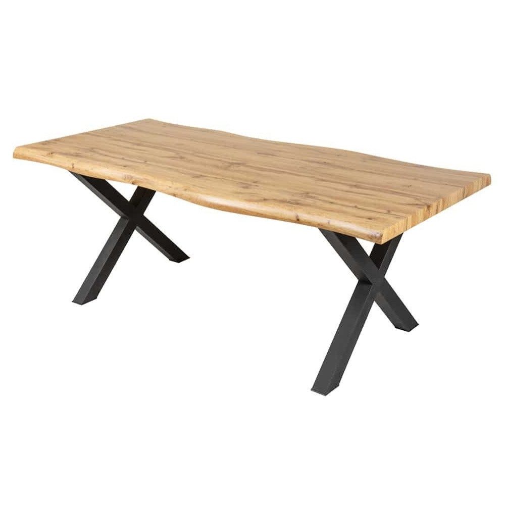 Das robuste X-Gestell aus schwarzem Metall sorgt nicht nur für Stabilität, sondern setzt auch einen markanten Kontrast zur natürlichen Holzoptik. Es verleiht dem Tisch seinen unverwechselbaren Loft-Charakter und macht ihn zum perfekten Begleiter für moderne Wohnkonzepte im Industrial- oder Scandi-Stil.