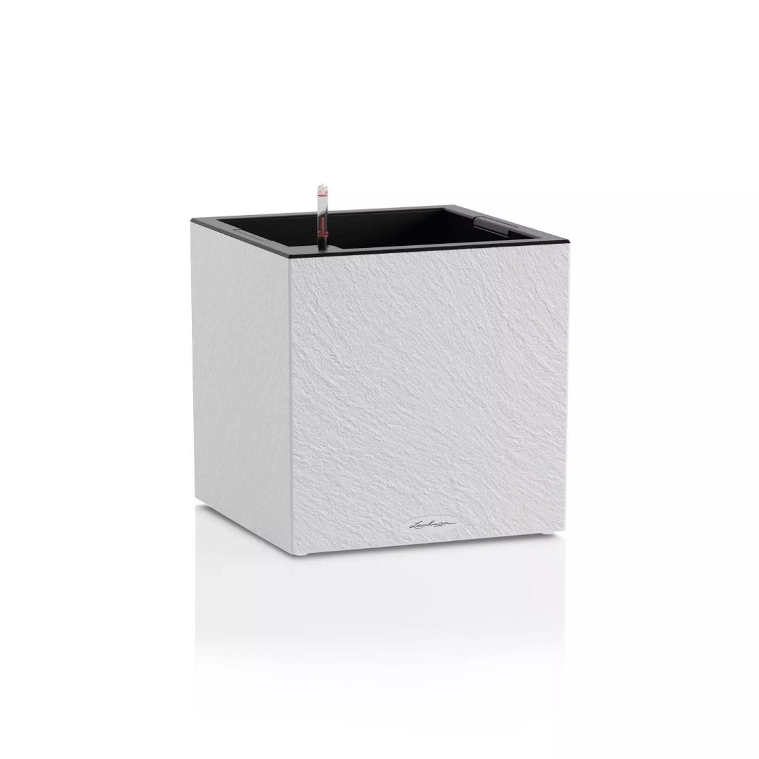 Das Pflanzgefäß ist mit seinen geraden Linien und der quadratischen Grundfläche ein stilvolles Accessoires für Ihren Garten oder die Terrasse. CANTO wurde schon oft mit Designpreisen ausgezeichnet. Sowohl als Pflanzwürfel, als auch als Säule bietet das Gefäß ausreichend Platz für herrliche Pflanzenarrangements, welche dank integriertem Original LECHUZA-Bewässerungssystem stets mit der richtigem Menge an Wasser versorgt werden. Der herausnehmbare Pflanzeinsatz mit versenkbaren Griffen erleichtert Ihnen das Bepflanzen. So kann beispielsweise auch die Säule, CANTO high, komfortabel am Boden bepflanzt werden. Durch die haptische Oberfläche, die an Schiefer erinnert, können Sie CANTO Slatestone ganz individuell mit vielen Pflanzen kombinieren. Sowohl in den Größen 30 als auch 40 bietet das Pflanzgefäß ausreichend Platz für Blüten, Blätter, Stauden und Gräser. Die authentische Schiefer-Optik ist dabei robust gegenüber Witterungseinflüssen. Überschüssiges Regenwasser kann nach dem Entfernen der Überlaufschraube an der Gefäßunterseite ganz einfach abfließen. So wird Staunässe vermieden und Ihre Pflanzen sind das ganze Jahr über ein toller Blickfang.