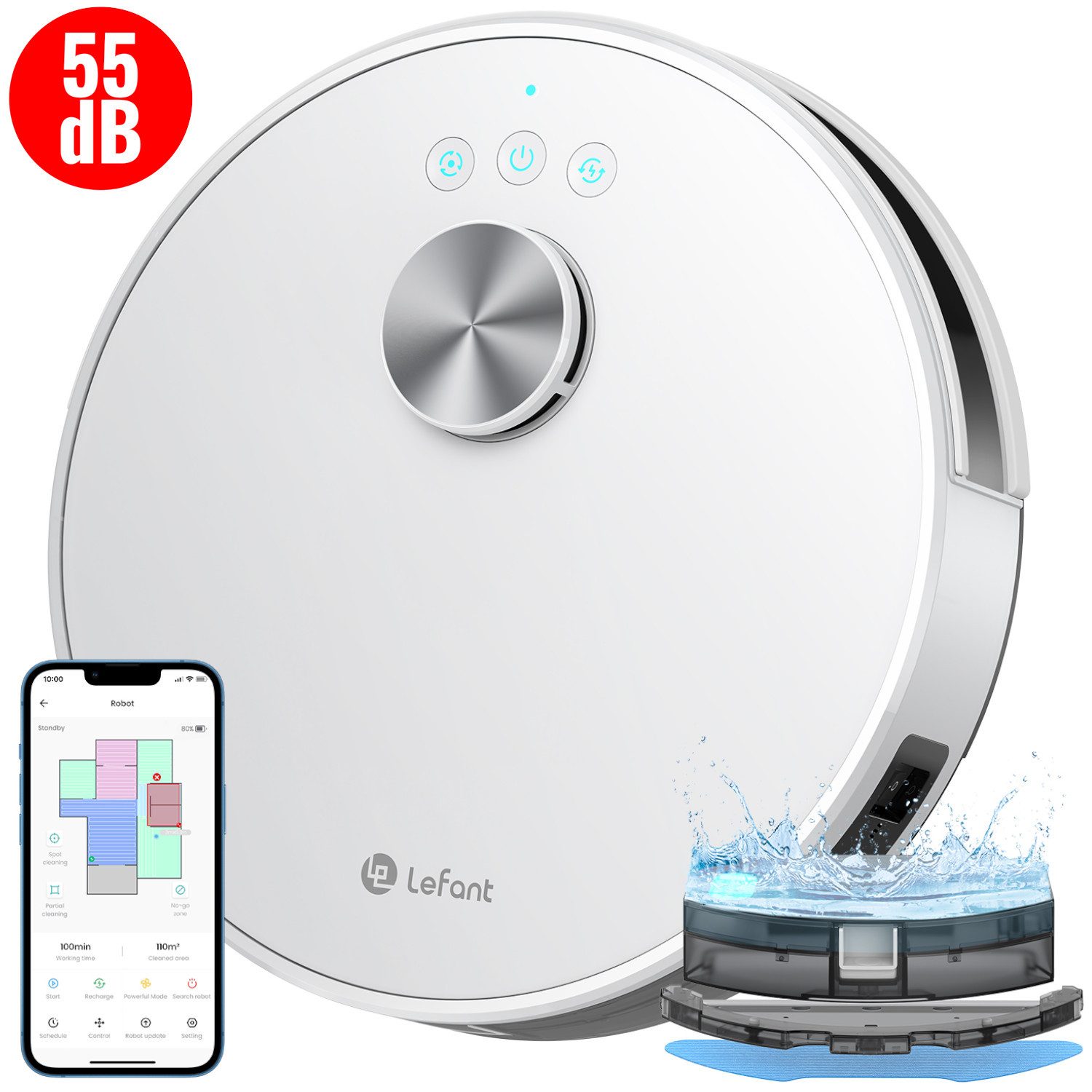 2 in 1 Wischen & Staubsaugen: Der Staubsauger- und Wischroboter LEFANT M1 ist mit der neuesten Wischtechnologie ausgestattet und verfügt über eine verbesserte Version einer elektronisch gesteuerten Wasserpumpe und einen einstellbaren 3-stufigen Wasserausstoß, sodass Sie ein völlig sauberes Zuhause (Staub) genießen können Behälter: 520 ml, Wassertank: 160 ml).
