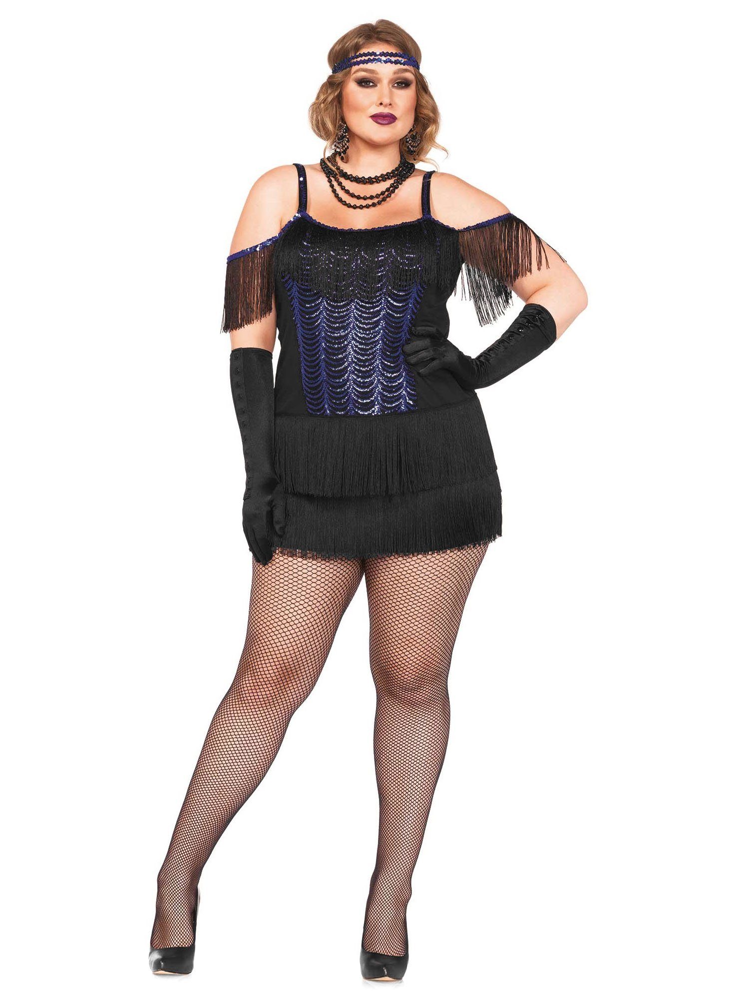 Ausstattung | - Sexy Flapper blau XXL Kostüm zweiteilig- mit Minikleid- mit Stirnband- ohne sonstige Kostümteile und Accessoires |