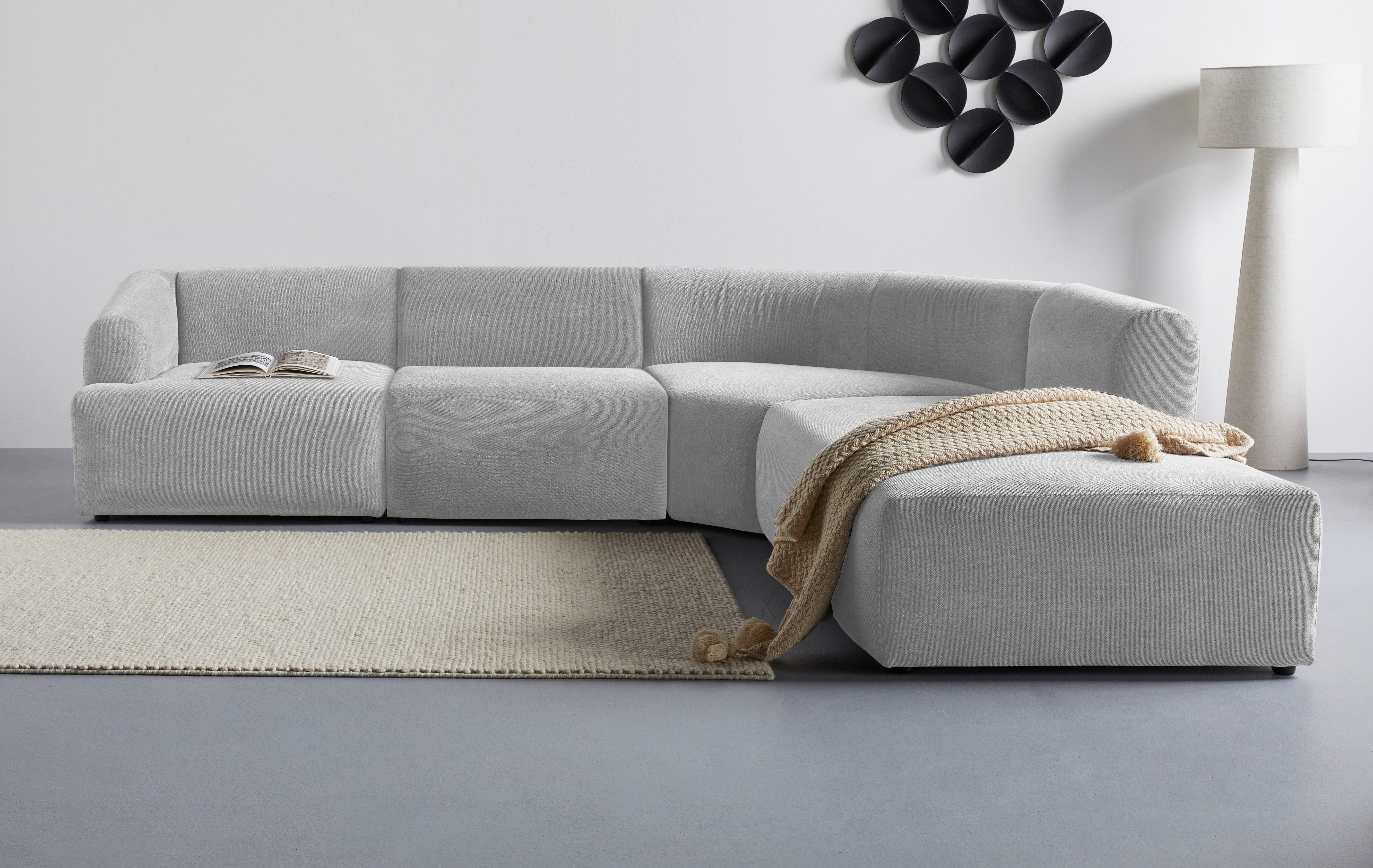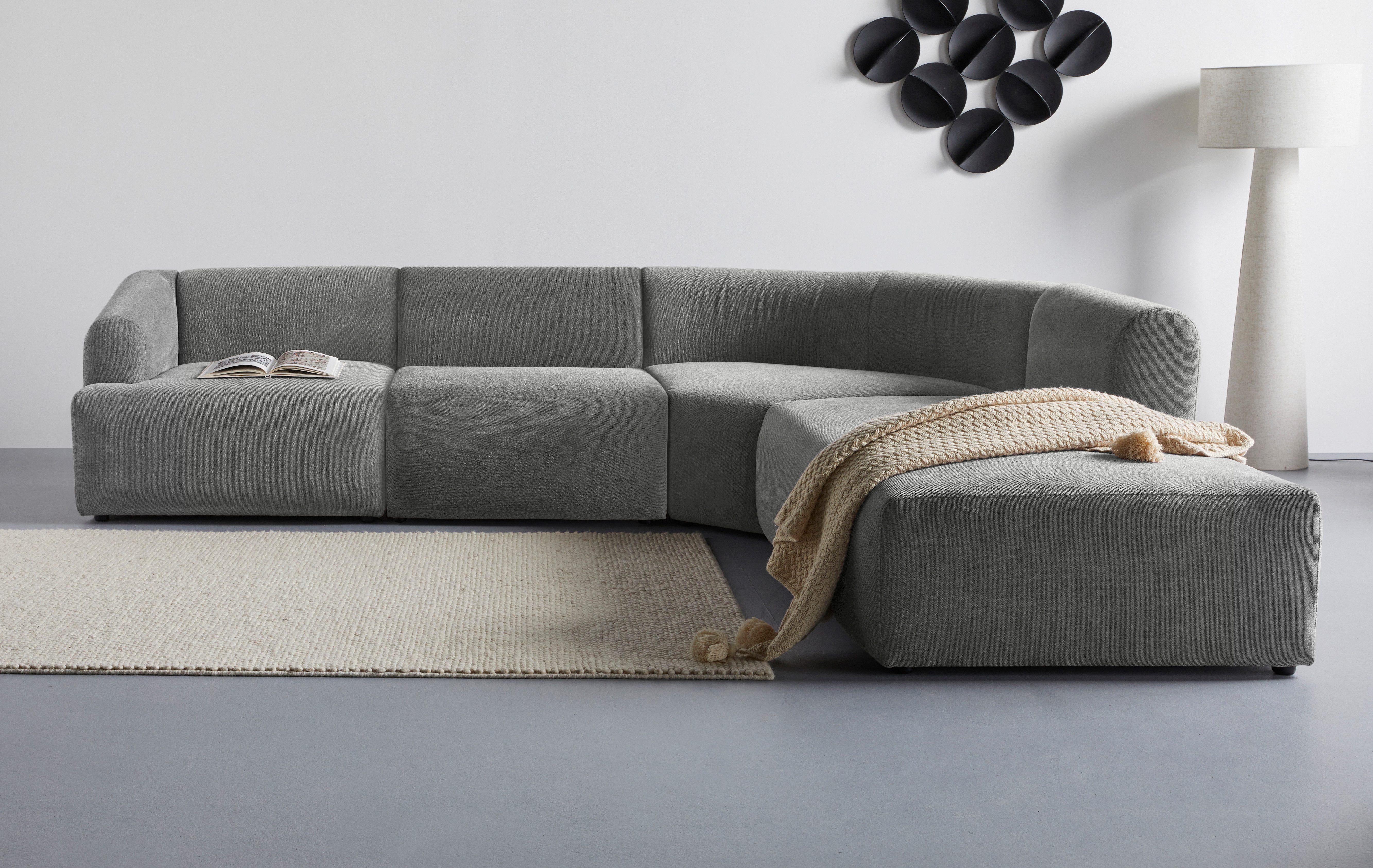 Dieses Ecksofa »LYZA L-Form links/rechts, Modularsofa "XL", Maße B/T/H: 287/267/74 cm« von LeGer Home by Lena Gercke bietet dir dank der Wellenunterfederung hohen Sitzkomfort und Tragfähigkeit. Beim Ecksofa befindet sich der lange Schenkel, von vorne betrachtet, rechts. Die maximale Belastbarkeit pro Sitzplatz liegt bei einem Gewicht von 110 Kilogramm. Der Bezug aus Strukturstoff ist angenehm weich, sehr beständig und neigt kaum zur Faltenbildung. Dieses Modell wurde von Hand gefertigt.