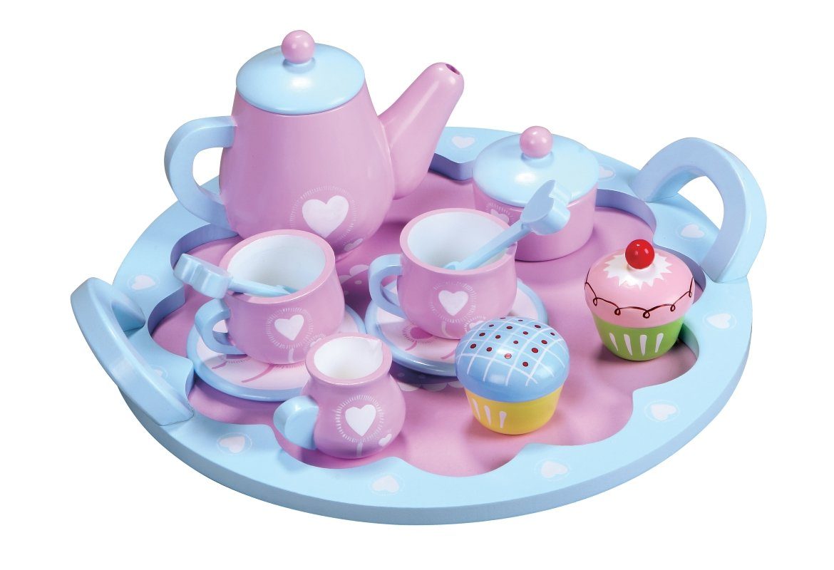 Lieferumfang | Tablett, Teekanne mit Deckel, 2 Tassen, 2 Löffel, Milchkännchen, 2 Cupcakes, Zuckerdose |