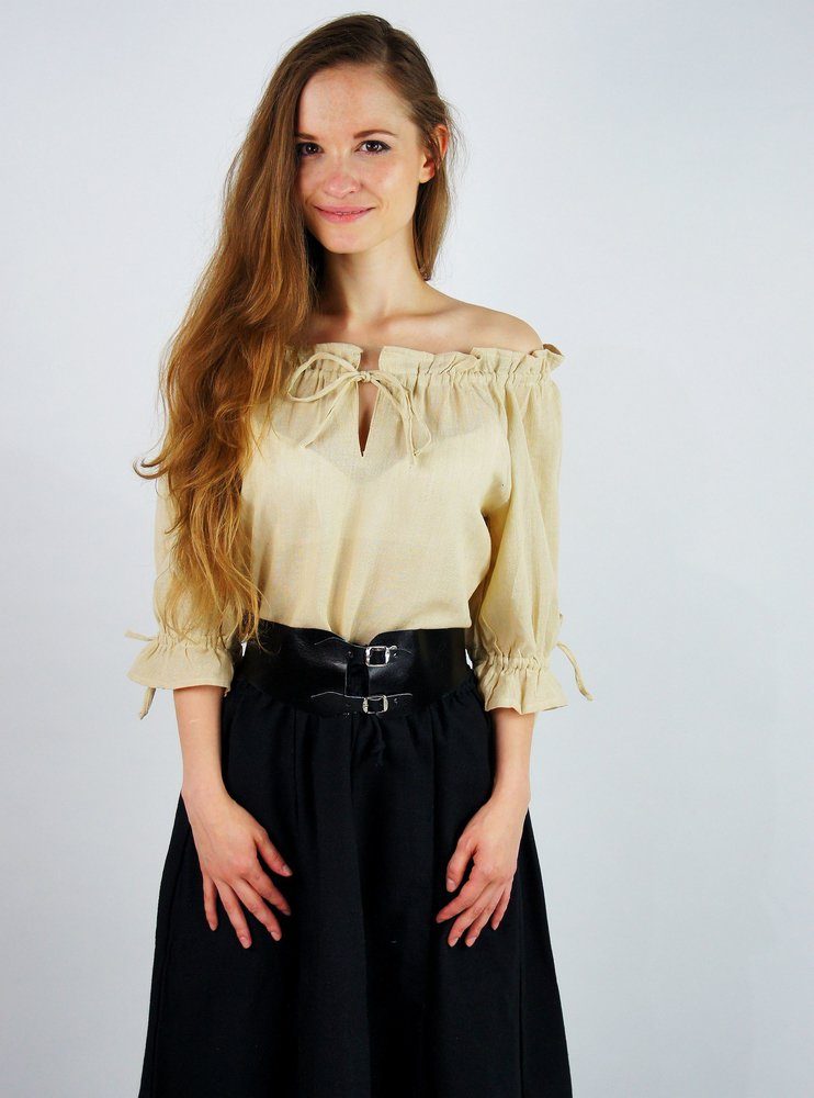 Gefertigt aus leichtem Baumwollstoff ist diese Bluse optimal geeignet für den Sommer. Aufgrund seines zeitlosen Stiles lässt es sich auf Mittelalter- und Larp-Veranstaltungen, sowie im Alltag tragen.