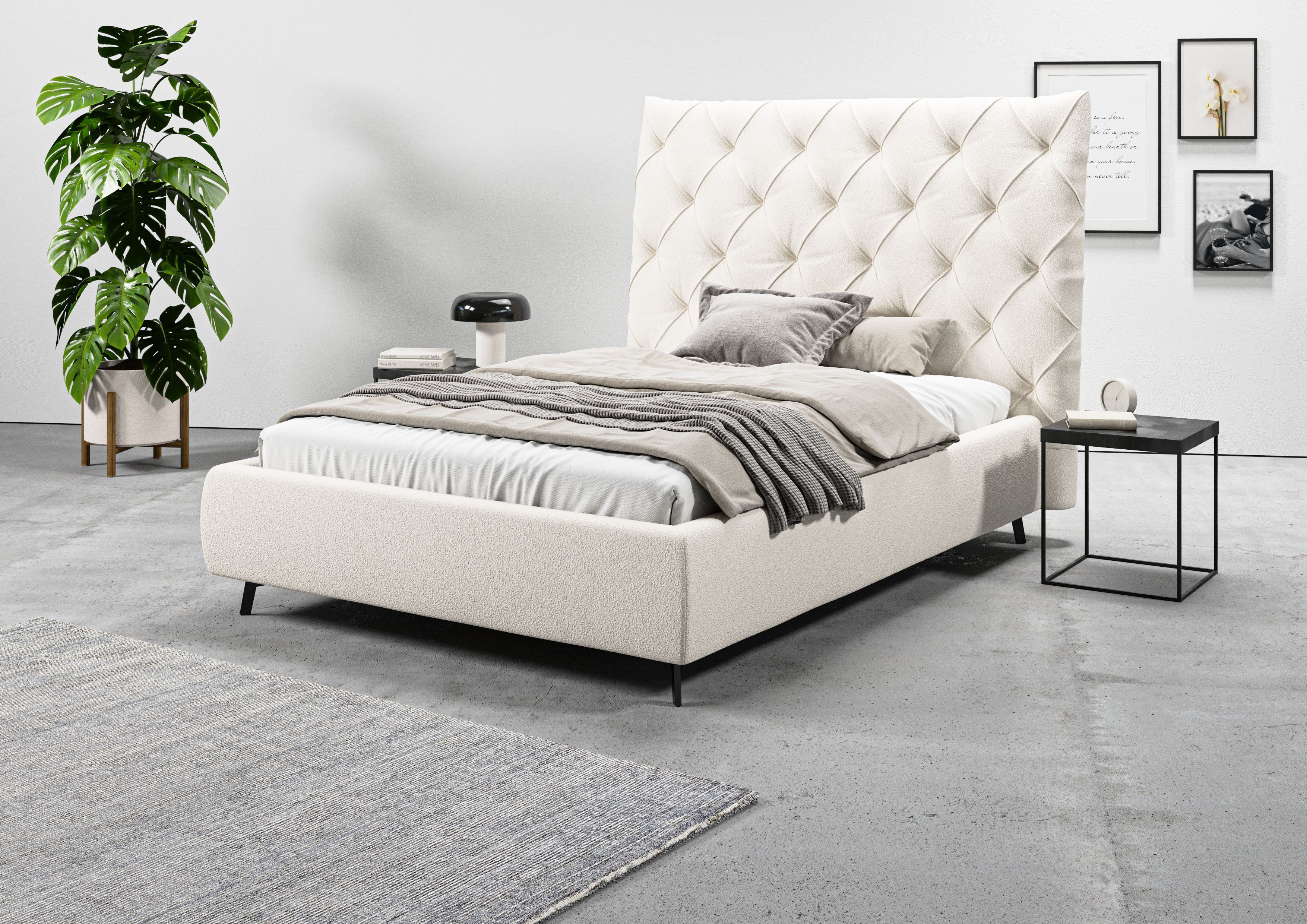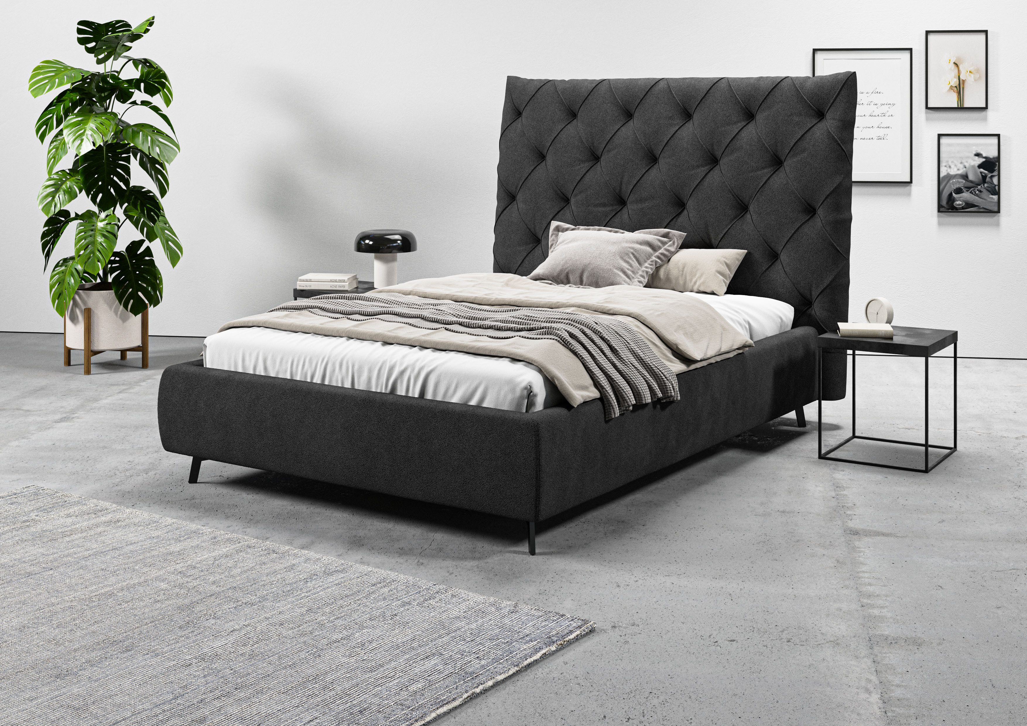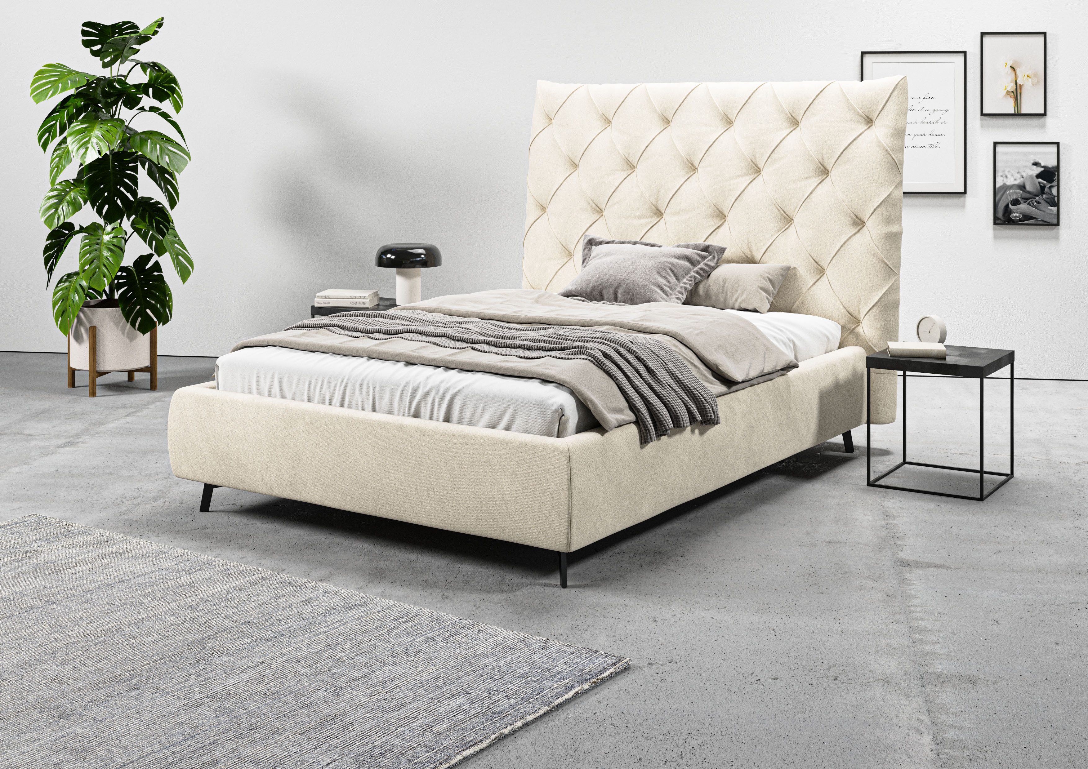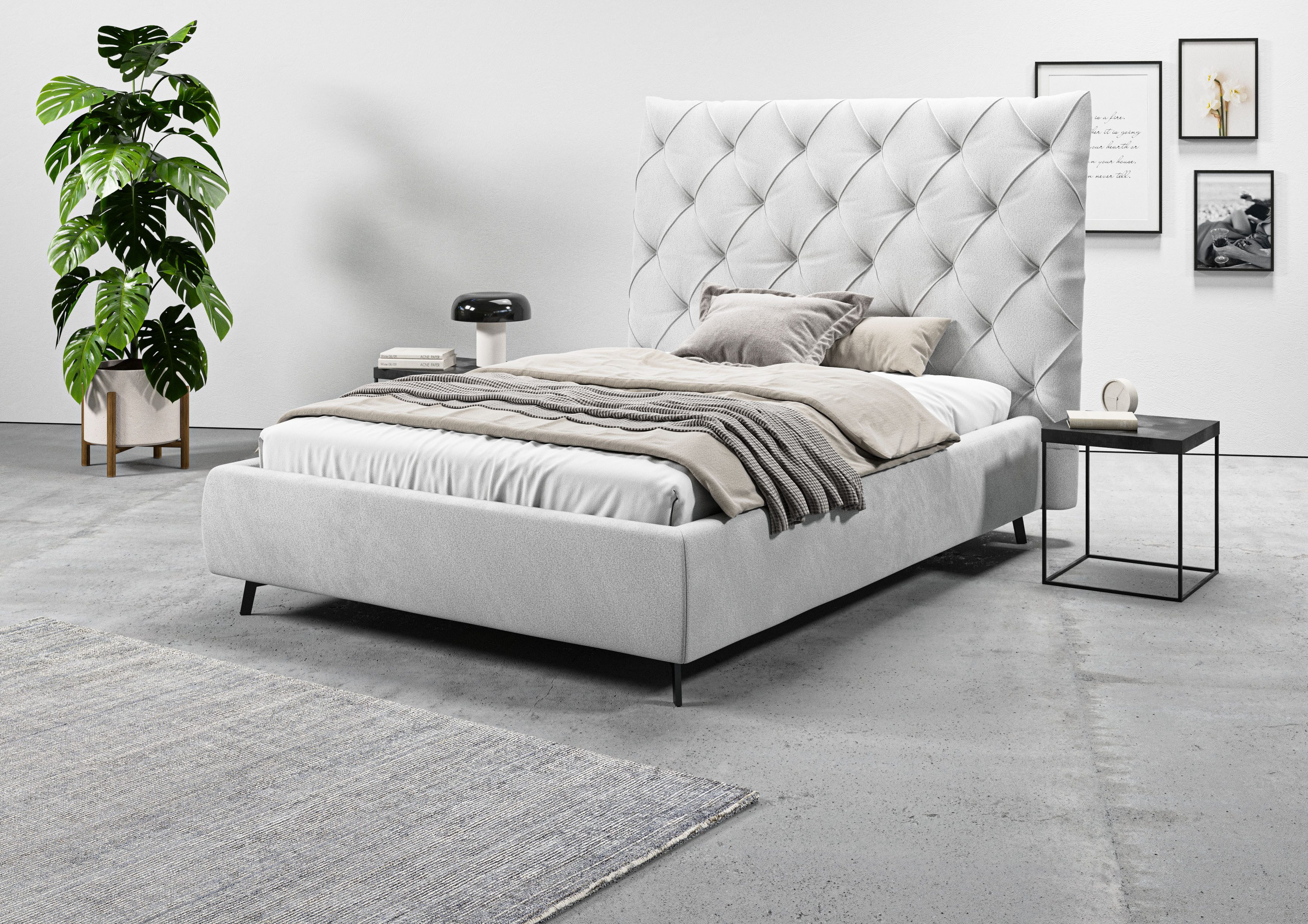 Im klassischen Stil zeigt sich das Polsterbett und wirkt dabei edel und zeitlos zugleich. Zur Inspiration: Schicke Teppiche, polierte Möbeloberflächen und gläserne sowie verspiegelte Details passen perfekt zum exklusiven Wohnstil. Das Produkt ist Teil der Maxime Serie. Впередe Artikel aus der Serie lassen sich gut dazu kombinieren.