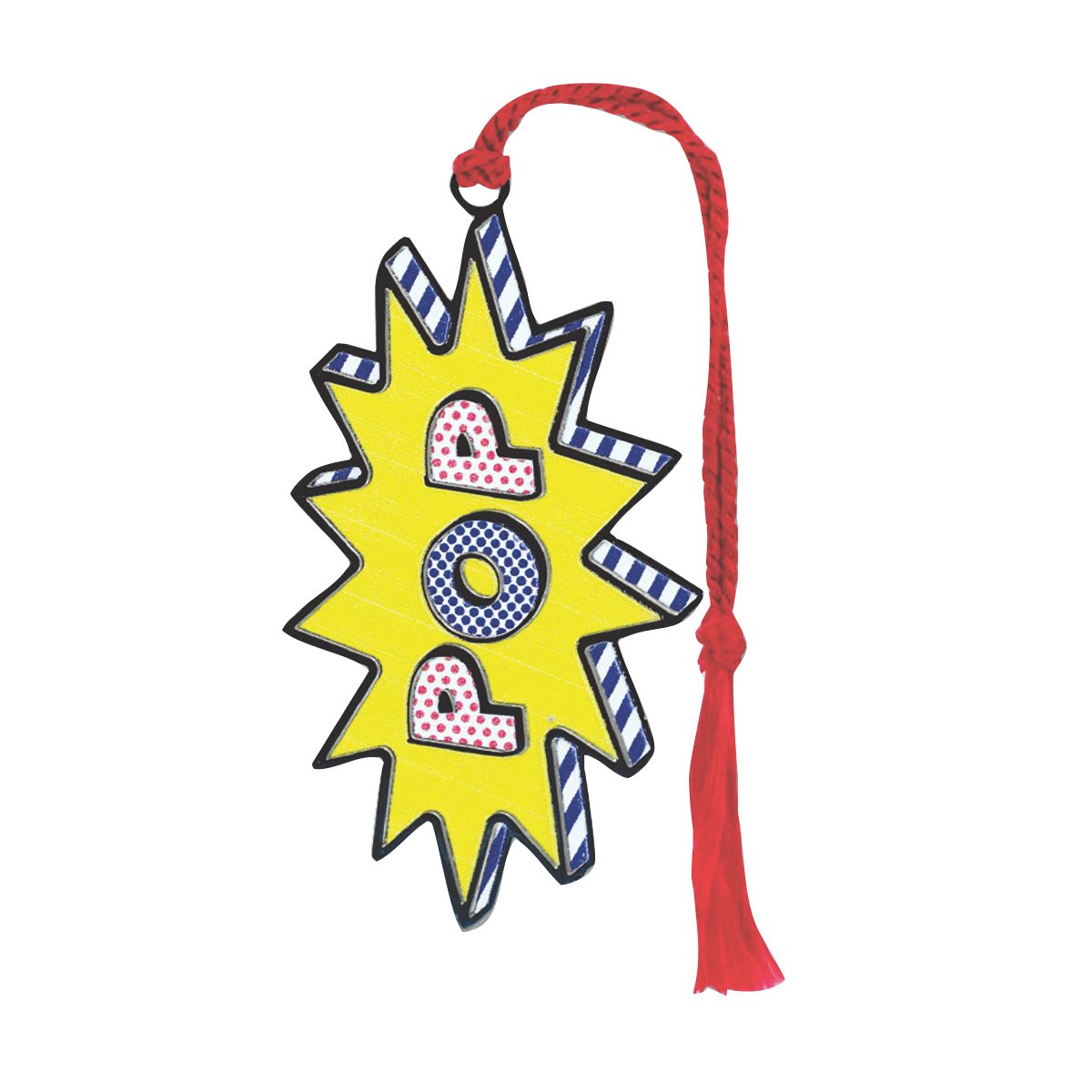 Dieses originelle Lesezeichen ist inspiriert von den ikonischen Kunstwerken der Pop-Art-Bewegung, die von der Bildsprache der Werbung und dem Comic-Stil beeinflusst wurde. Die farbenfrohen, grafischen Werke parodieren den American Way of Life und die Kunstwelt selbst, oft auf eine augenzwinkernde Weise.