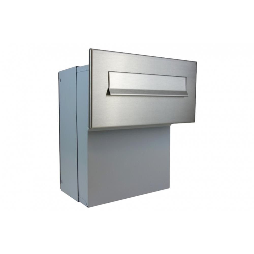 Der F-046 schmaler Durchwurf Briefkasten in Edelstahl ist ein Modell für den Einbau in Mauern oder Mauerpfeilern, die besonders in der Breite begrenzt sind. Im Vergleich zum F-04 weist dieser bei der Frontplatte und dem Kasten eine geringere Breite von 4 cm auf. Der F-046 überzeugt durch sein robustes und langlebiges Material, die schlichte Edelstahl Frontplatte, das umfangreiche Fassungsvermögen durch die winklige Form sowie die große Entnahmetür. Das Modell ist für einen Ein- bis Zweifamilienhaushalt geeignet.