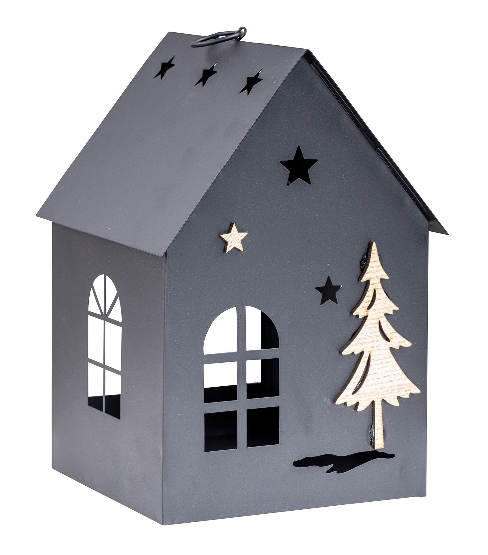 Diese dekorativen LED Laterne kombiniert minimalistisches Design mit architektonischem Flair. Die dekorative Lichtdeko begeistert mit klarem Design, charakteristischen Fensterdetails und hochwertiger Verarbeitung. Sterne und eine hölzerne Tanne vervollständigen den Look und geben dem Haus ein weihnachtliches Design. Die klaren Linien passen perfekt in Räume im Scandi-, Loft- oder Industrial-Stil. Ein bereits integriertes LED Licht bringt die Dekoration zum Strahlen und sorgt für ein stimmungsvolles Lichtspiel.