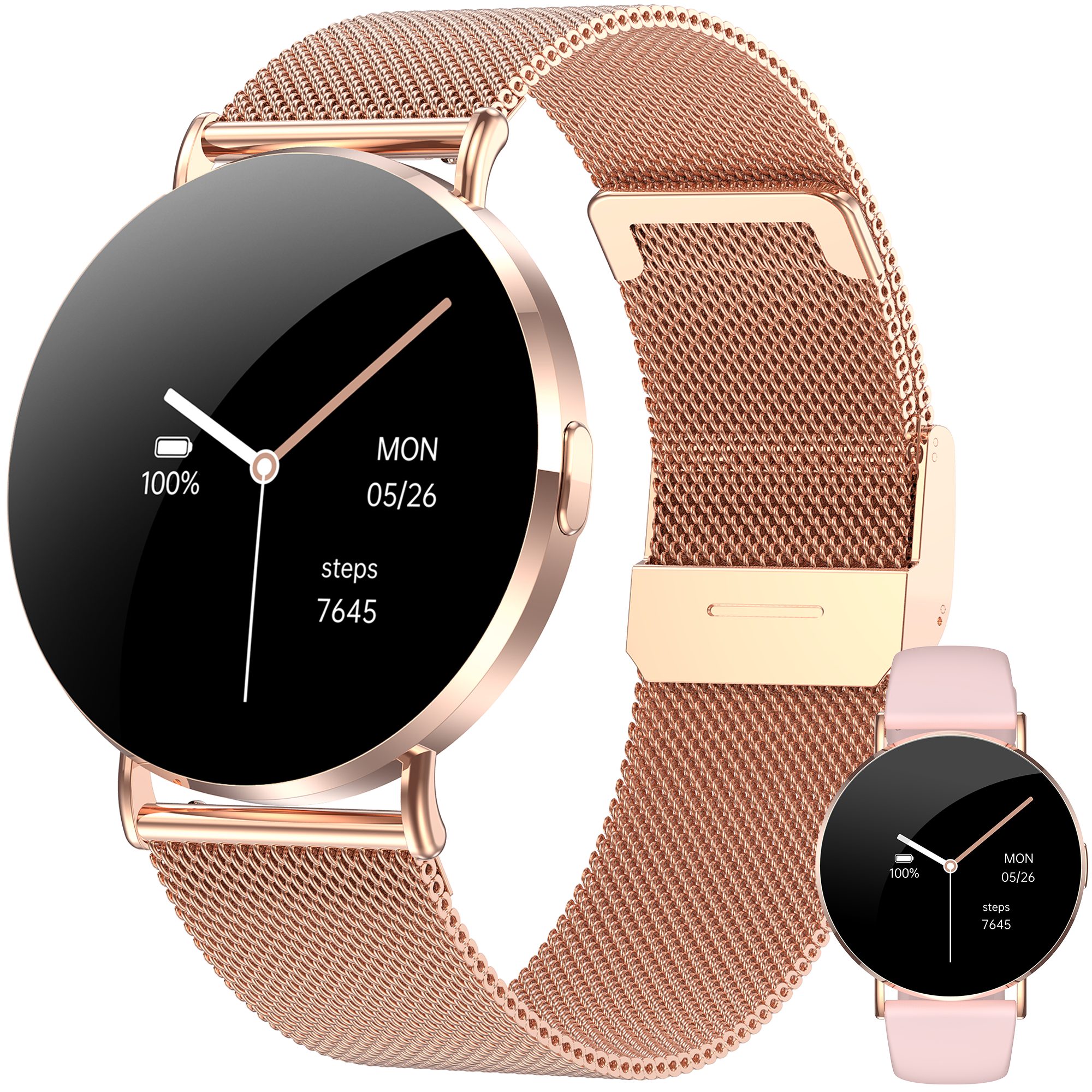 Zusatzfunktionen | Stress Level Messung All-Round Test Schrittzähler Kalorienverbrauch Herzfrequenzmesser Periodenüberwachung Schlafüberwachung Alarme und Erinnerungen Always-On Display Wecker Blutsauerstoff Blutdruck 400 Ziffernblätter Über 20 Always-On Optionen Eigenes Hintergrundbild Anti-Verlust Funktionen Fernauslöser Musiksteuerung SOS Funktion Atemübungen Sporterkennung |