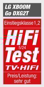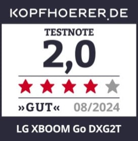 Der LG XBOOM Go XG2T erzielt im Einzeltest des Magazins „HiFi Test“ das Gesamtergebnis „Einstiegsklasse 1,2“. Der „sehr gute“ Klang ist sehr kraftvoll und präzise. Das Gerät ist „sehr klein und kompakt“. Es ist u. a. dank des Lautstärkerads sehr einfach zu bedienen. Die umfangreiche Ausstattung überzeugt mit Extra-Funktionen in der App wie etwa einem Sleep-Timer. Außerdem beträgt die lange Akkulaufzeit bis zu „10 Stunden bei mittlerer Lautstärke“. Insgesamt bietet der Bluetooth-Lautsprecher ein „sehr gutes“ Preis-Leistungs-Verhältnis.