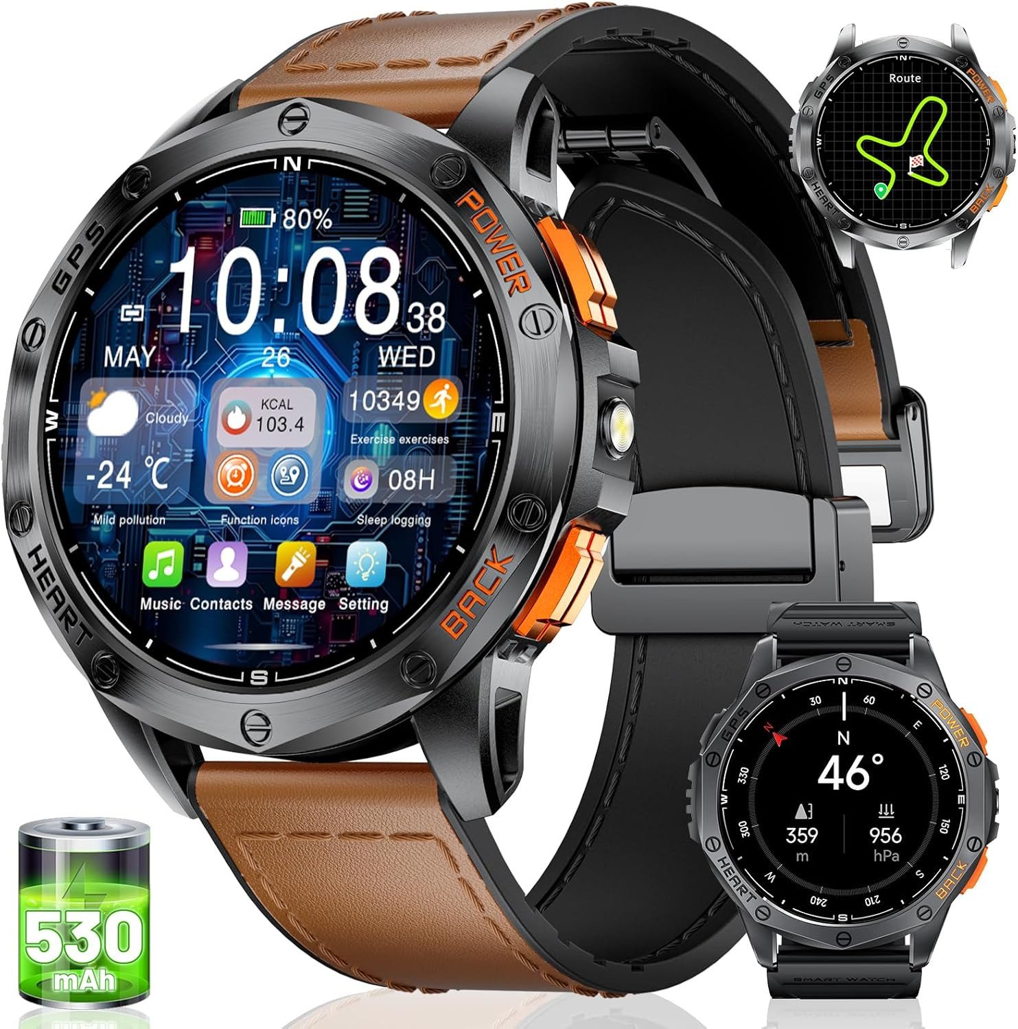 Zusatzfunktionen | smartwatch mit lederarmband smartwatch mit amoled display herren smartwatch mit gps und kompass smartwatch mit led taschenlampe smartwatch mit 530mah akku smartwatch mit schnellem laden smartwatch mit 120 sportmodi smartwatch mit wasserschutz ip68 smartwatch mit telefonfunktion bluetooth smartwatch mit kontaktverwaltung smartwatch mit schlafüberwachung smartwatch mit sp02 messung smartwatch für outdoor und fitness smartwatch mit musik und kamerasteuerung smartwatch mit benachrichtigungen |