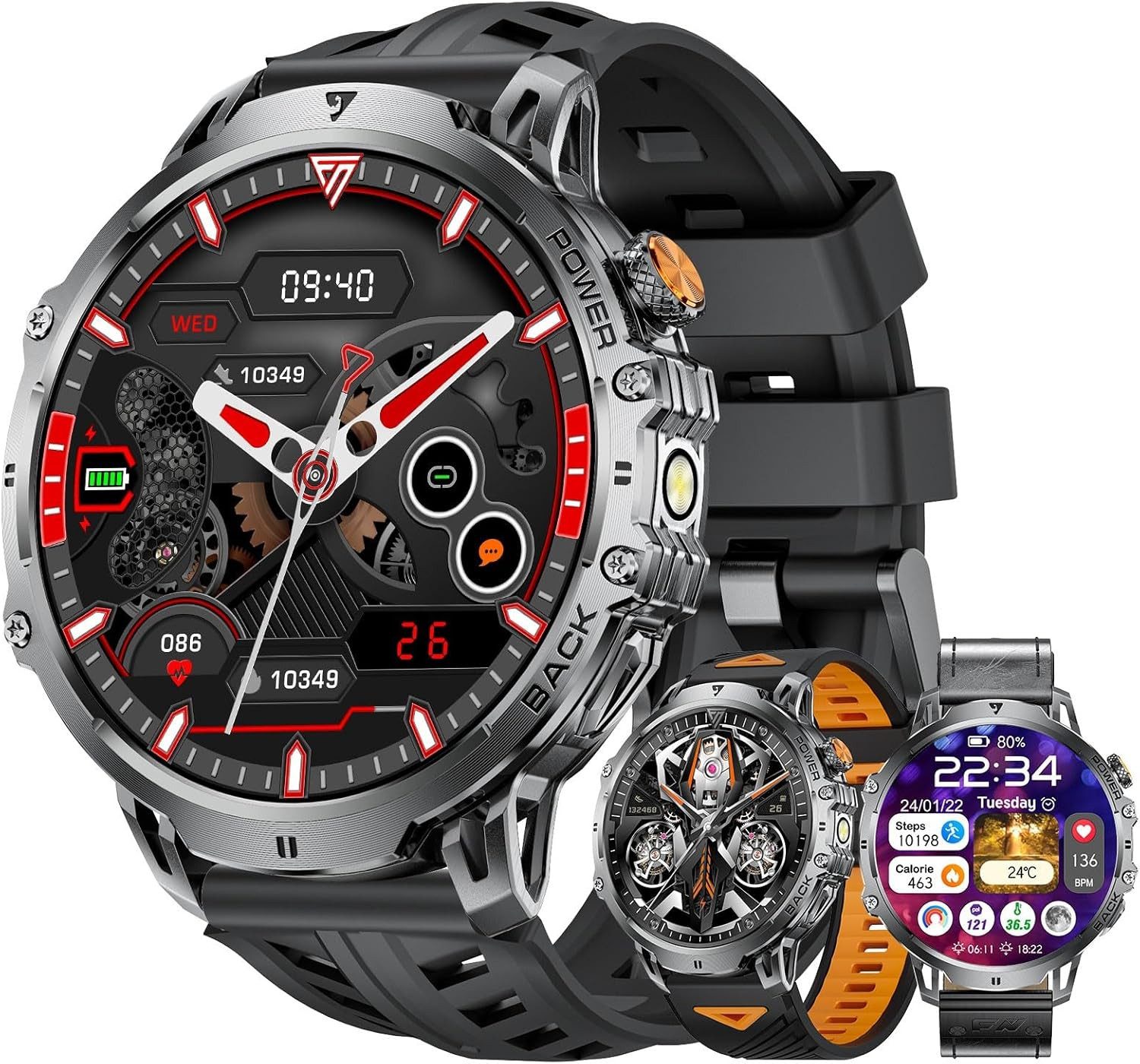 Das 1,85-Zoll-IPS-HD-Display bietet 60 Hz flüssige Darstellung, klare Sicht auch bei Sonne und über 150 dynamische Zifferblätter. Eine integrierte LED-Taschenlampe mit 800 Lumen leuchtet bis zu 2 Stunden.