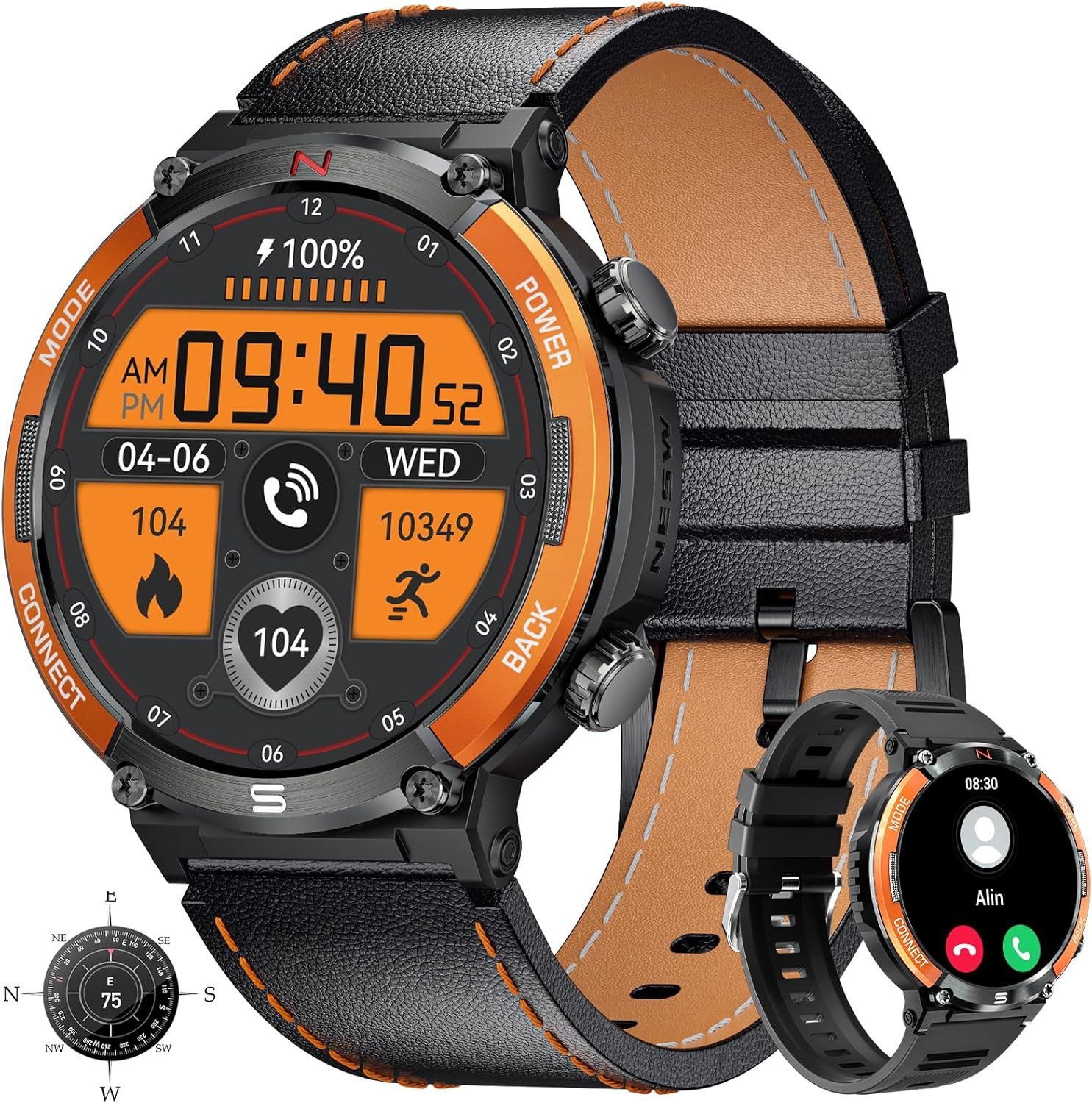 Zusatzfunktionen | Smartwatch mit 1.52 Zoll Display Smartwatch mit 420 mAh Akku Smartwatch mit 122 Sportmodi Smartwatch mit Gesundheitsfunktionen Smartwatch mit Blutdruckmessung Smartwatch mit SpO2 Messung Smartwatch mit Schlaftracking Smartwatch mit Herzfrequenzmessung Smartwatch mit Bluetooth Telefonie Smartwatch mit Sprachassistent Smartwatch mit Kompass Funktion Smartwatch mit Taschenlampe Herren Smartwatch mit Leder und Silikonarmband Smartwatch mit HD Touchscreen Herren Smartwatch für Alltag und Outdoor Sport |