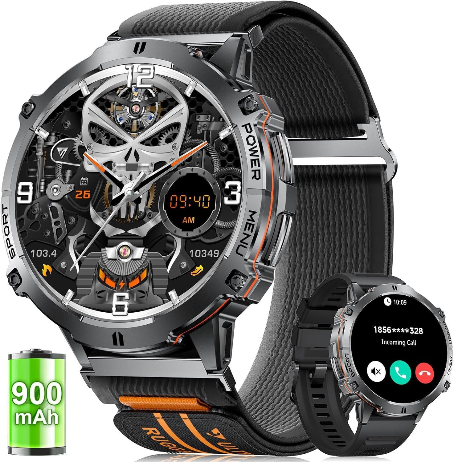 Zubehör im Lieferumfang | 1 x Ladekabel. 1 x Benutzerhandbuch (nicht in englischer Sprache). 1 x Herren-Smartwatch. 1 x Nylonarmband. 1 x Silikonarmband. 1 x Benutzerhandbuch. |
