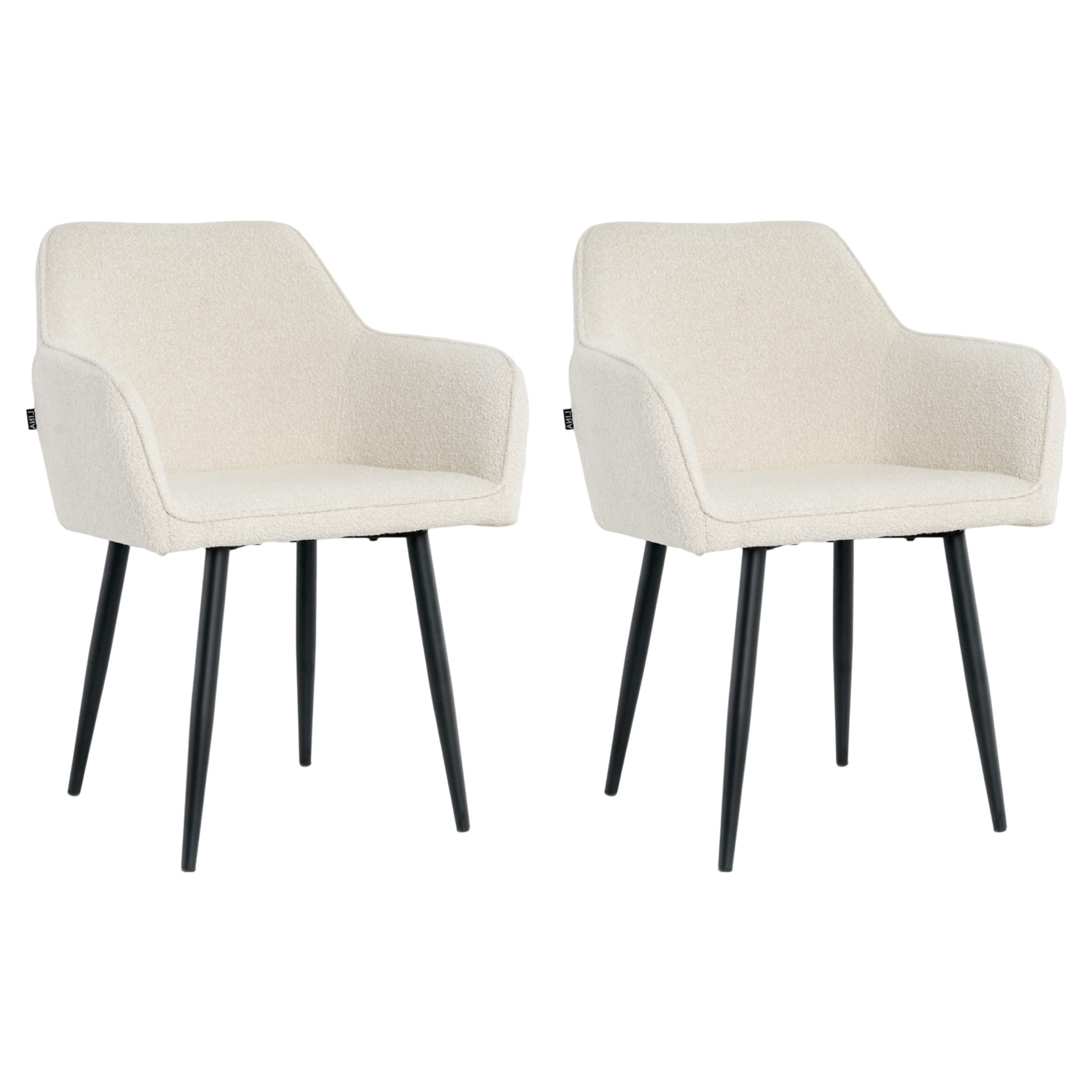 Der strukturierte Bezug aus Bouclé-Stoff kombiniert mit einer weichen Schaumstoffpolsterung bietet ein angenehmes Sitzgefühl – ideal für längere Aufenthalte am Tisch oder entspannte Momente zwischendurch.