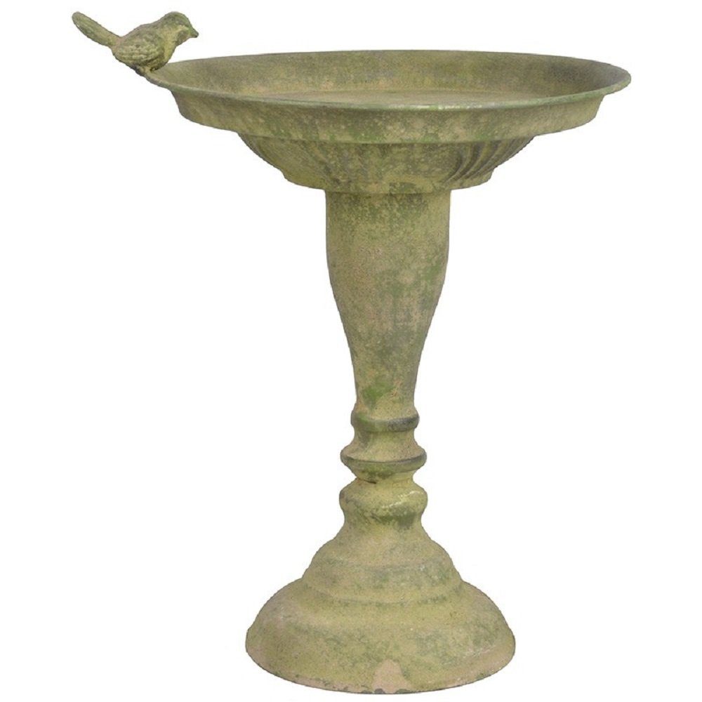 Vogeltränken und Gartendekoration im Antik- und Landhausdesign liegen seit Jahren voll im Trend, erinnern sie uns doch an längst vergangene Zeiten. Besuchen Sie unseren Shop mit tausenden angebotenen historischen Gartenartikeln. Eine Vogeltränke bietet den Gartenvögeln gleich zweifaches Vergnügen. Sie dient ihnen zugleich als Trinkstelle als auch als Bademöglichkeit vor allem im Sommer. Stellen Sie die Vogeltränke an einen gut einsehbaren Platz, sodass sie gut angeflogen werden kann. Erneuern Sie das Wasser regelmäßig und säubern Sie vorher die Tränke. Auf dem Rand der Vogeltränke hat bereits ein Vögelchen Platz genommen.