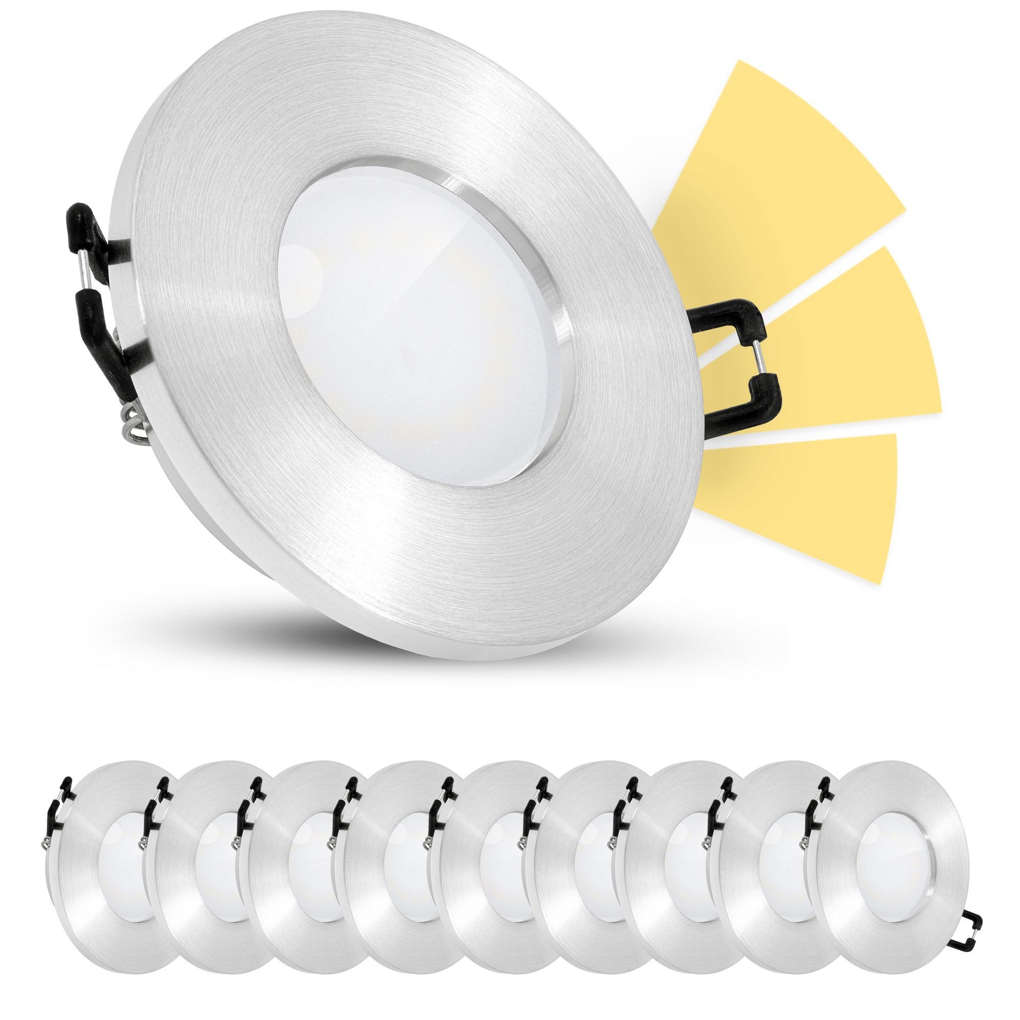 Lieferumfang | 10x Einbaurahmen IP65 Alu rund10x LED fourSTEP 5W warmweiß10x GU10 Fassung |