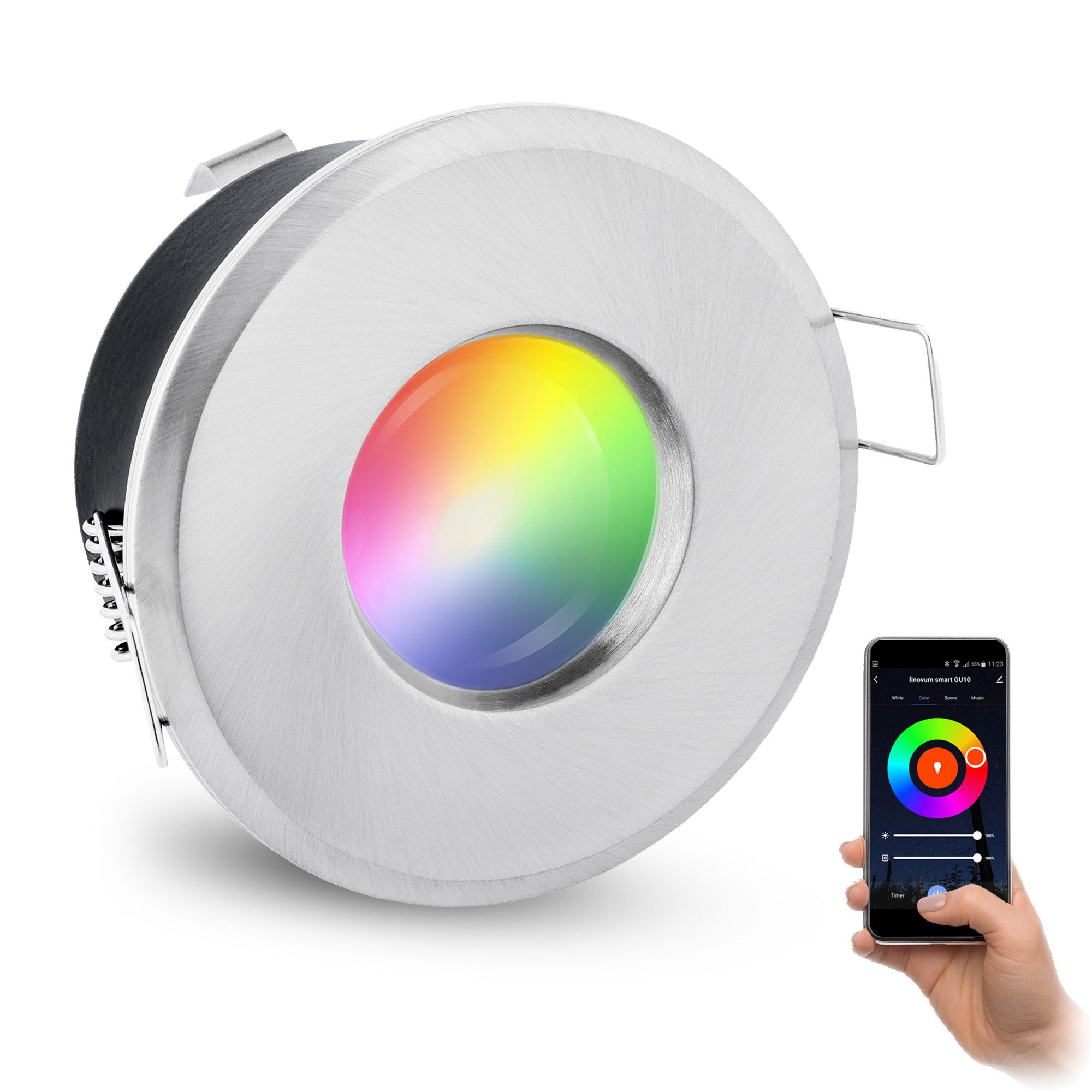 Lieferumfang | 1x Einbaustrahler Rahmen IP65 Stahl rund starr1x Smarte LED Modul Lampe 4W |