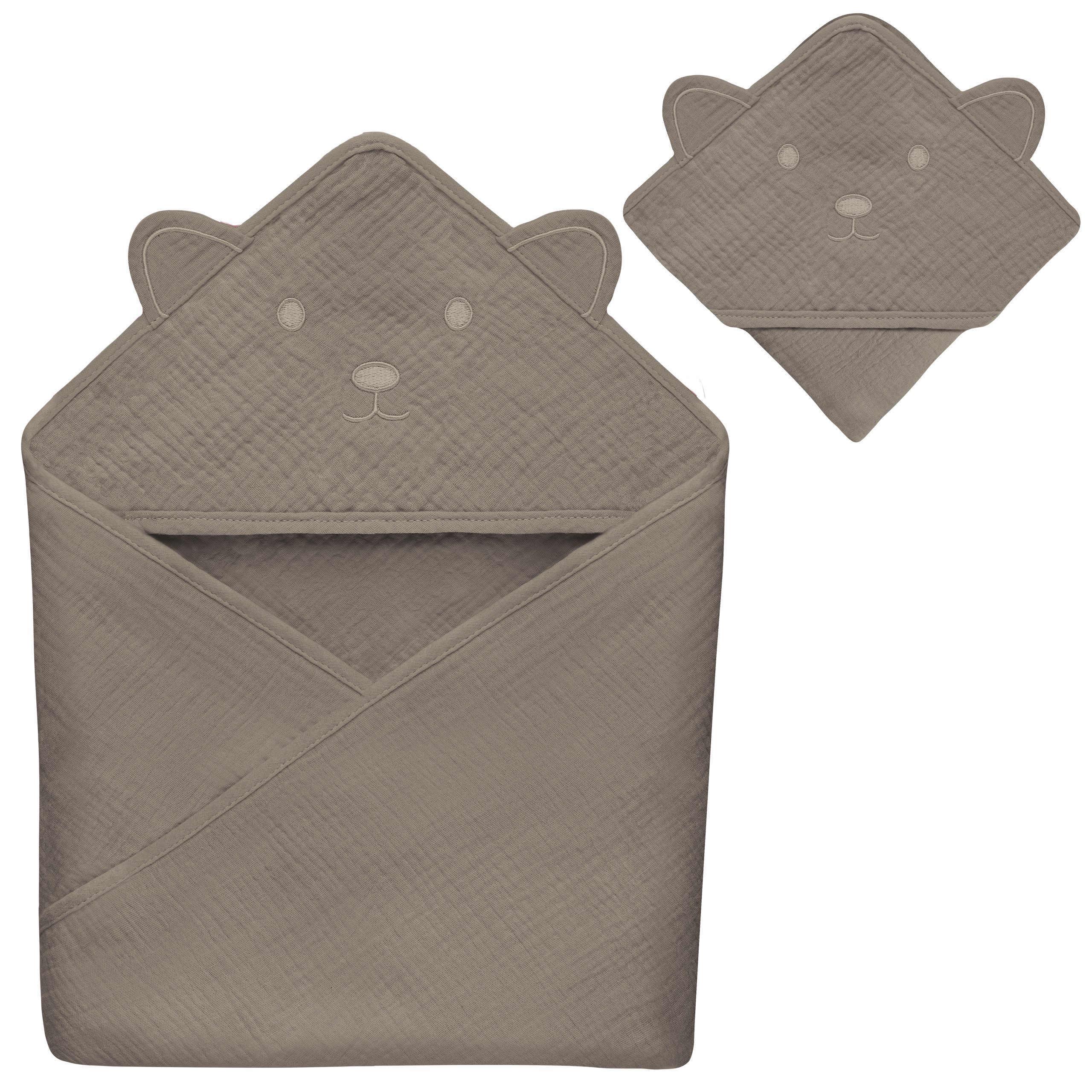 Eine Kapuze mit aufgesticktem Tier schützt zusätzlich vor Kälte und Wind und weckt bei Ihrem Baby gleichzeitig angenehme Assoziationen zum täglichen Baden. Dank seiner universellen Розмір ist das Musselin-Kapuzenhandtuch für Neugeborene geeignet, aber auch für ältere Kinder, die bereits laufen können.