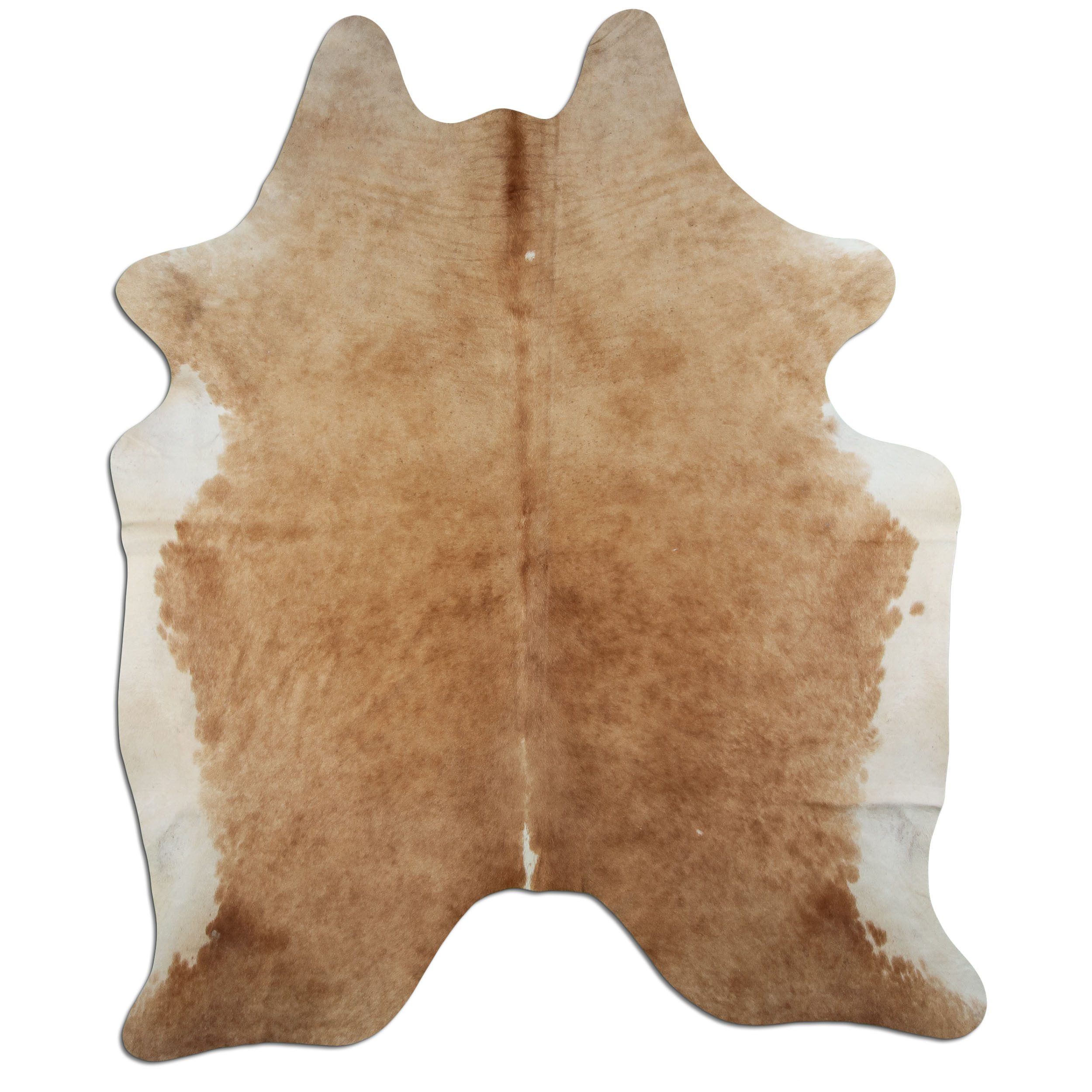 Sanftes Kuhfell in Beige mit warmen braunen Nuancen, die sich harmonisch über die Fläche verteilen. Das Fell wirkt freundlich und hell und schafft eine gemütliche Atmosphäre. Besonders passend für skandinavische oder minimalistische Einrichtungen.