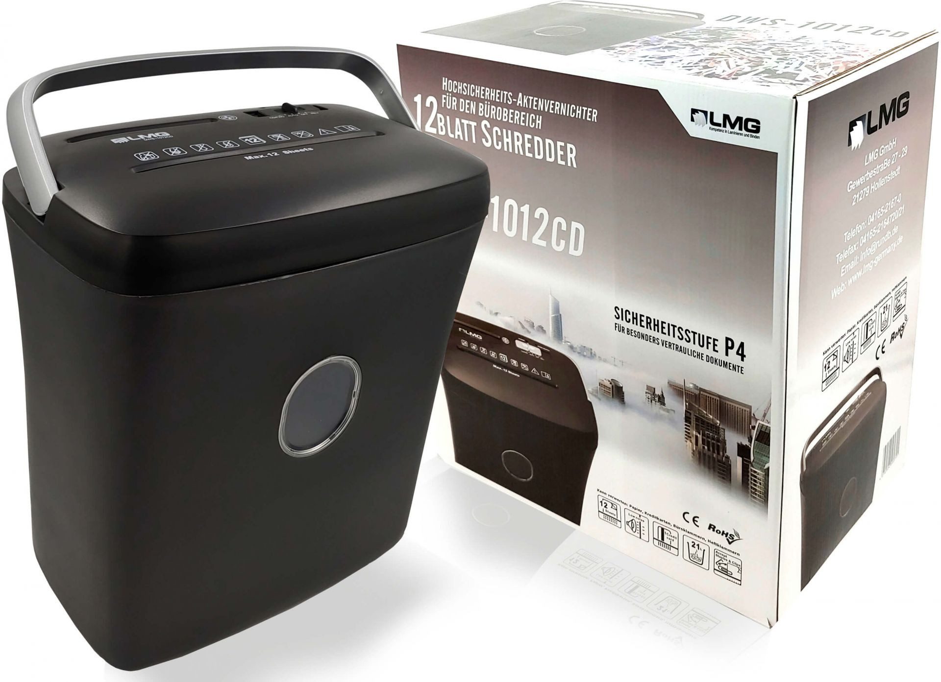 Mit dem LMG DWS-1012CD Aktenvernichter behalten Sie die volle Kontrolle über sensible Daten – ob im Büro oder Homeoffice. Der leistungsstarke Partikelschnitt sorgt mit 4 × 35 mm kleinen Schnipseln für zuverlässige Sicherheit gemäß DIN 66399, Sicherheitsstufe P-4 – perfekt für DSGVO-relevante Unterlagen.