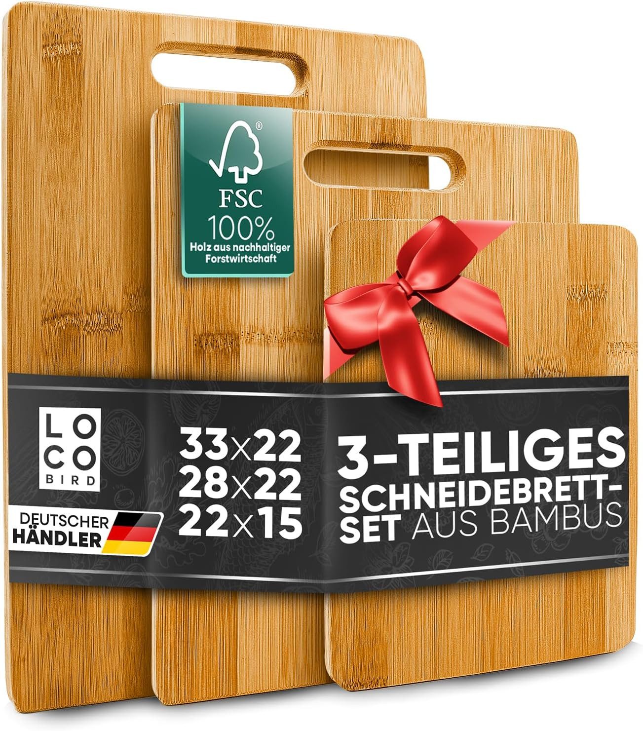 Mit dem Loco Bird Schneidebretter 3er Set aus Bambus werden Sie sich darauf freuen zu kochen! Denn durch das massive Bambus-Holz von diesem Schnittbretter schonen Sie Ihre Messer, verringern Lärm beim Schneiden und haben viel Platz. Außerdem hat das Steakbrett eine spezielle Saftrinne auf einer Seite. Durch diese Rinne kann sich der Saft auf einer Seite des Bambusbrettes sammeln und macht das Schneiden so sauberer und das Holzschneidebrett lässt sich auch deutlich einfacher Reinigen. Schmale Ritzen von Saft und anderen Resten zu reinigen gehört mit diesem Küchenbrett der Vergangenheit an! Auf der 2. Seite von dem großen Holzbrett für die Küche mit den Maßen von 33x22 / 28x22 / 15x22cm cm befindet sich eine glatte Seite. So können Sie das Brett sicher legen oder die Seite für andere Dinge verwenden. Da Bambus auch antibakteriell wirkt, können Sie sich sicher sein, dass Sie das Fleischbrett immer wieder hygienisch rein bekommen. Die Vorteile der Schneideunterlage im Blick: - Großes Schneidbrett mit viel Platz - Doppelseitig verwendbar - Extrem leicht zu reinigen - Macht Ihr Leben leichter - Schont Ihre Messer Warten Sie nicht länger und bestellen Sie noch heute das Bambusschneidbrett von Loco Bird! küche gross bamboo schneidebretter chopping food schneidbretter wood große bambus-schneidebrett öko für bretter lang holubrett grau, schneidbrettchen, fleisch, servieren schneidebrett, holz, bambus, holzbrett, küche, groß, schneidbrett, board, brett, holzschneidebrett, gross, küchenbrett, bamboo, cutting, bambusbrett, schneidebretter, aus, chopping, großes, food, mit, schneidbretter, wood, große, bambus-schneidebrett, öko, für, saftrille, bretter, lang, schneidbrettchen, fleisch, servieren