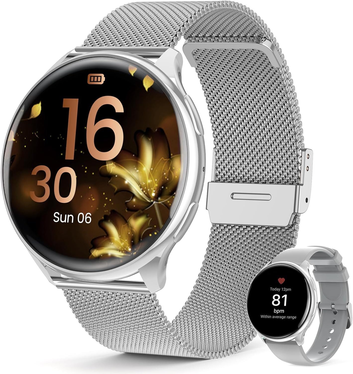 2024 Smartwatch Damen Rund mit Telefonfunktion 1,39'' HD Touchscreen Uhr mit IP68/SpO2/Menstruationszyklus/Schlafmonitor/Wasserdichter/Schrittzähler/Fitness/für iOS Android