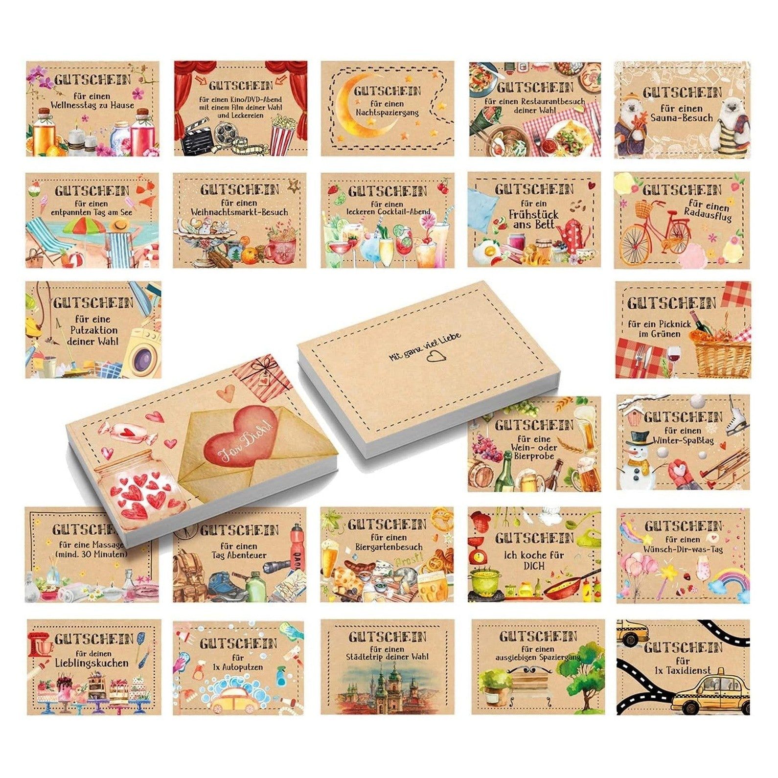 • Das Gutscheinheft ist (einzeln oder komplett) ein schönes Geschenk für den Partner oder die Partnerin, für den Freund oder die Freundin oder auch für gute Freunde. Anlässe: Geburtstag, Weihnachten, Jahrestag, Hochzeitstag. Da es sich um 24 Gutscheine handelt, kann der Gutscheinblock auch super als Adventskalender verwendet werden.