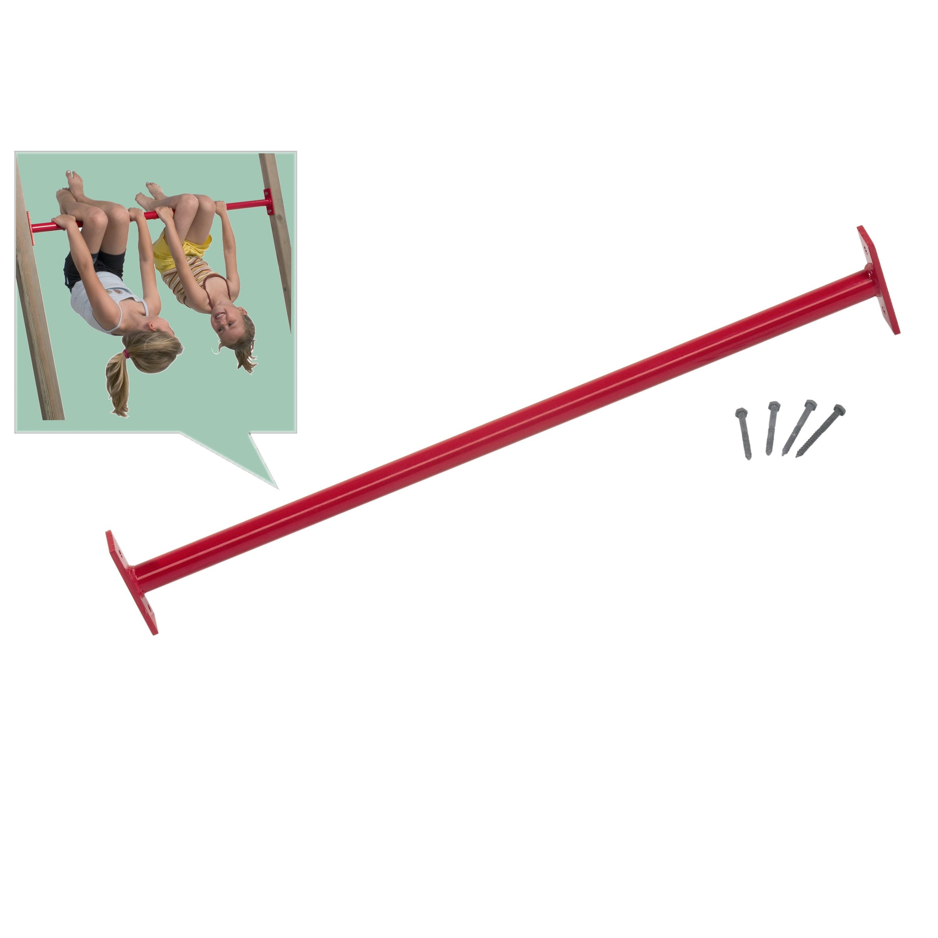 Entdecken Sie unsere hochwertige Reckstange aus pulverbeschichtetem Metall in ansprechendem Rot. Diese robuste und langlebige Reckstange ist die ideale Lösung für Ihr Fitness- oder Trainingsumfeld. Produktdetails: Material: Pulverbeschichtetes Metall Farbe: Rot Durchmesser der Reckstange: 33 mm Довжина der Reckstange: 90 oder 125 cm Wandstärke der Platten: 2,5 mm Befestigungsmaterial: Inklusive 4 Sechskant-Holzschrauben (Durchmesser 8x80) für eine sichere seitliche Befestigung Vorteile: Hohe Stabilität und Langlebigkeit durch hochwertige Materialien Einfache Montage dank im Lieferumfang enthaltenem Befestigungsmaterial Attraktives Design in Rot, das in jedes Trainingsumfeld passt Anwendung: Ideal für Spieltürme, Kletterlandschaften. Perfekt geeignet für Klimmzüge, Dehnübungen und viele weitere Fitnessanwendungen. Bringen Sie Ihr Spielen und Toben auf das nächste Level mit unserer professionellen Reckstange! Warnhinweise gem. EU-Verordnung: Nur für den Hausgebrauch. Nicht für Kinder unter drei Jahren geeignet. Benutzung unter unmittelbarer Aufsicht von Erwachsenen.