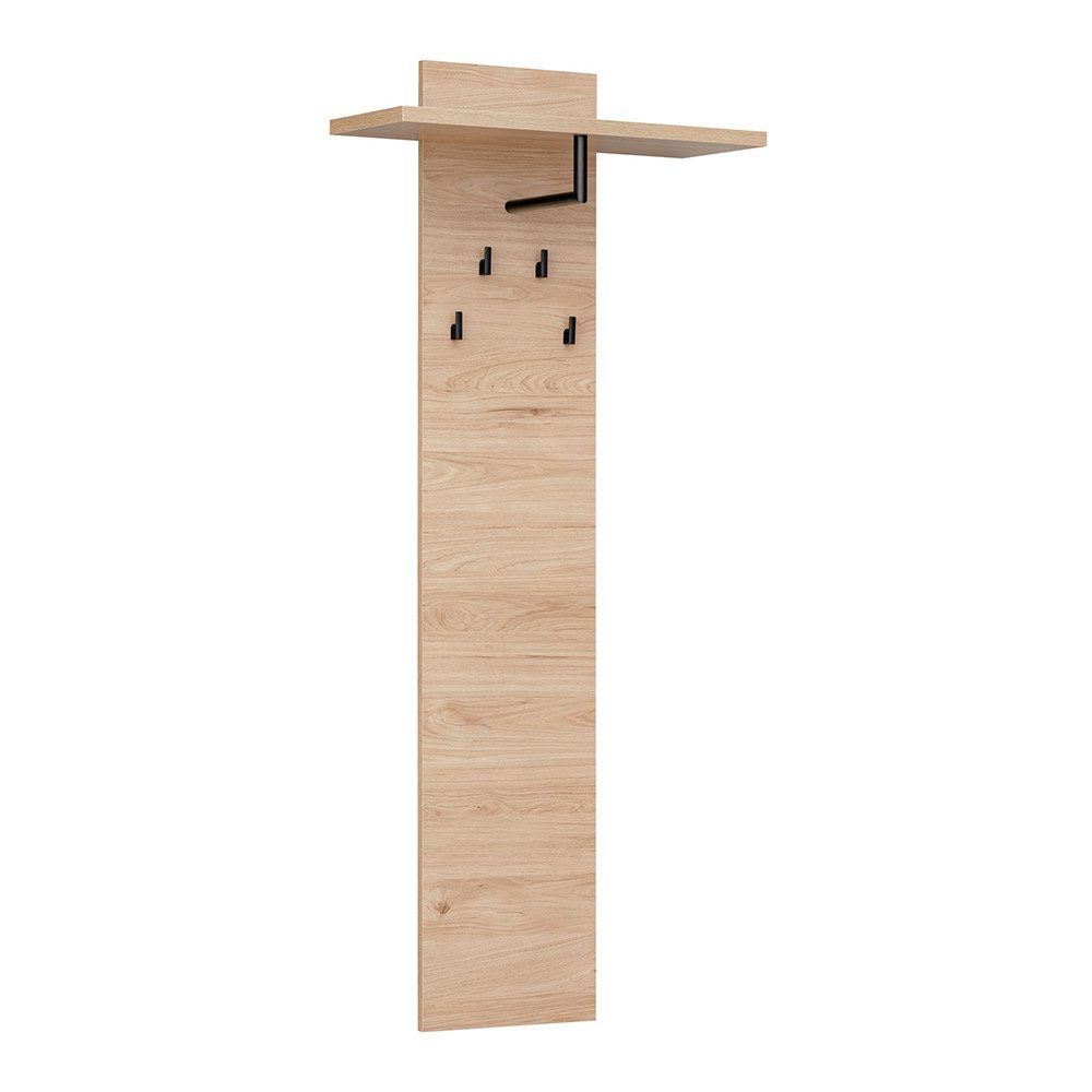 Verleihe deinem Eingangsbereich einen Hauch von Eleganz und Funktionalität mit unserer Garderobenmöbelserie aus Kastanienholz Nb. mit schwarzen Lamellen.