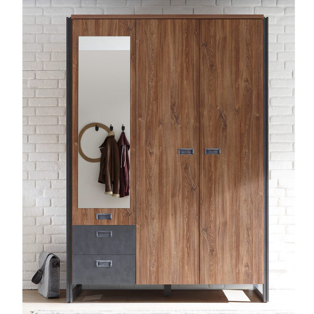 Die Wohn-, Schlaf- und Garderobenmöbel Serie DALLAS-61 präsentiert sich im neuen Industrial-Design: up to date. Die Optik wurde mit viel Liebe zum Detail dem industriellen Erscheinungsbild angepasst. Der Look im Stirling Oak Nb. Dekor mit den abgesetzten Elementen in Matera Anthrazit wirkt nüchtern aber nicht kalt.