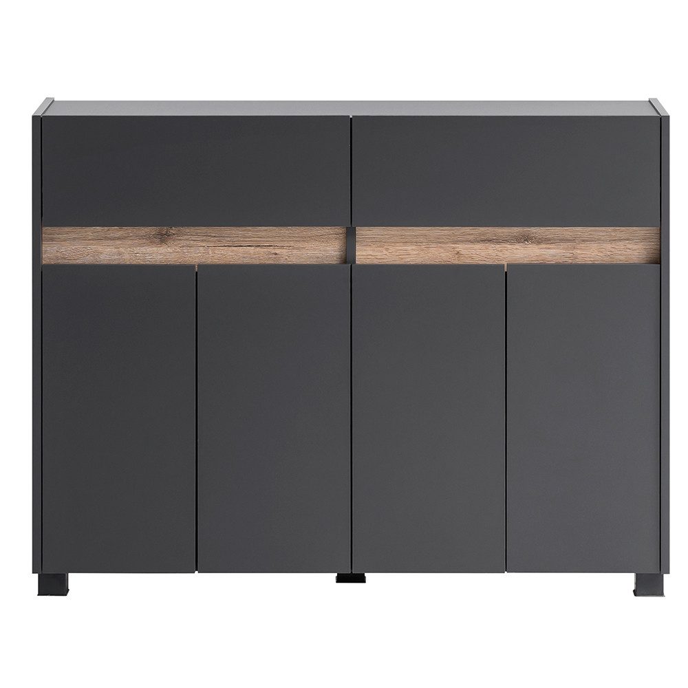 Diese Flurmöbel der Serie CORATO-80 bestechen durch modernes und geradliniges Design. Die grifflose Optik und die farblich abgesetzte Blende machen die Serie besonders hochwertig. Die Flurmöbel bieten genügend Stauraum und bringen Ordnung in deinen Eingangsbereich.