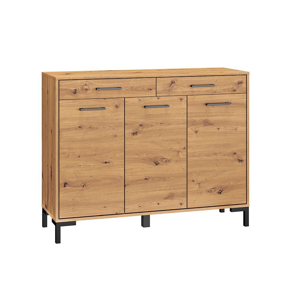 Mit ihrem edlen Design in Artisan Eiche Nb. bringen die Möbel Natürlichkeit in Wohnzimmer und Flur, während schwarze Griffe und Füße markante und moderne Akzente setzen.