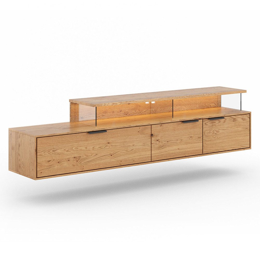 Natürlichkeit und klare Linien für Dein Zuhause: Dieses Lowboard aus massiver, geölter Eiche bietet mit einer Klappe, zwei Türen und offenen Fächern jede Menge Platz für Deine Wohnideen. Dank Softclose-Funktion schließt alles angenehm leise, während die Option zur stehenden oder wandhängenden Montage Dir volle Gestaltungsfreiheit lässt.