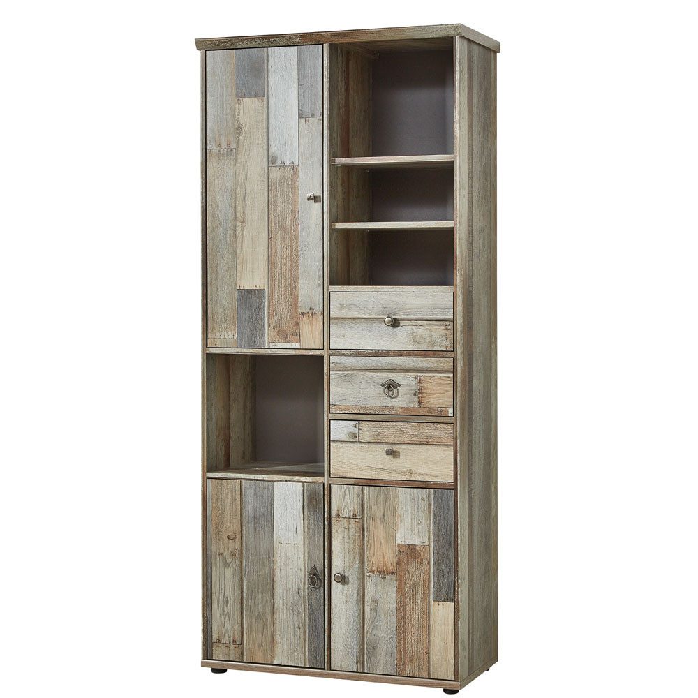 Das Wohnprogramm BRANSON-36 bringt die Natur auf besondere Weise in den Wohnbereich. Die Kombination aus verschiedenen Treibholz Nachbildungen und moderner Beleuchtung verleihen den Möbelstücken einen besonders individuellen Look. Türen, Schubkästen und offene Fächer sind in einzigartige Farbgebungen gehüllt und richten sich stilistisch nicht nur an Vintage-Fans.